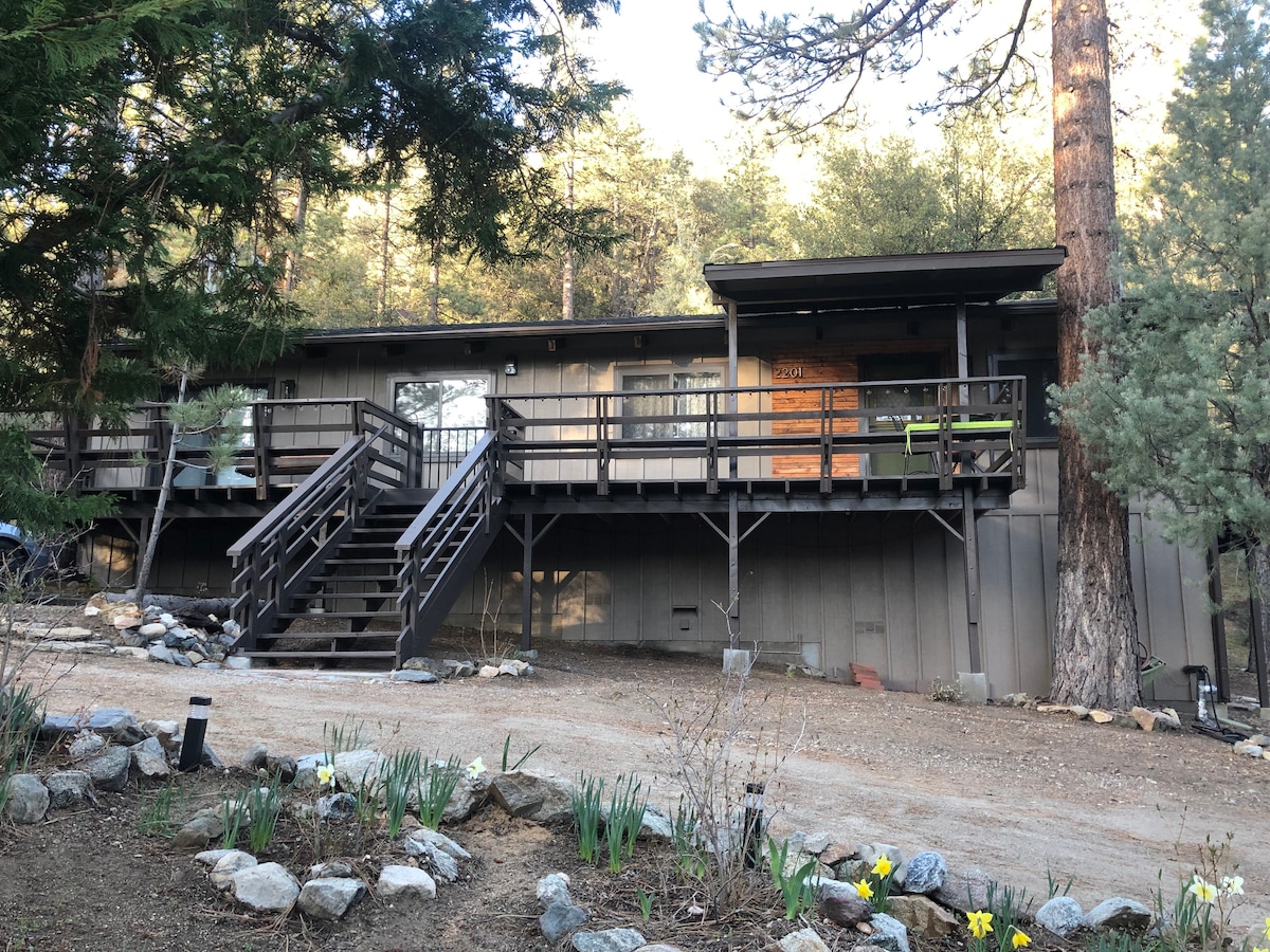 Our cabin is all about relaxation and reconnecting with nature. Breathe in the fresh forest air and enjoy the peaceful atmosphere that Pine Mountain Club offers. There are also many opportunities for new adventures golfing, hiking trails, exploring waterfalls and fishing on a lake. Public pool and hot tub with seasonal use. Our modern mountain cabin sleeps 4 and has a cozy woodstove with 2 sunny decks with mountain views. Wifi and bbq, gourmet kitchen.