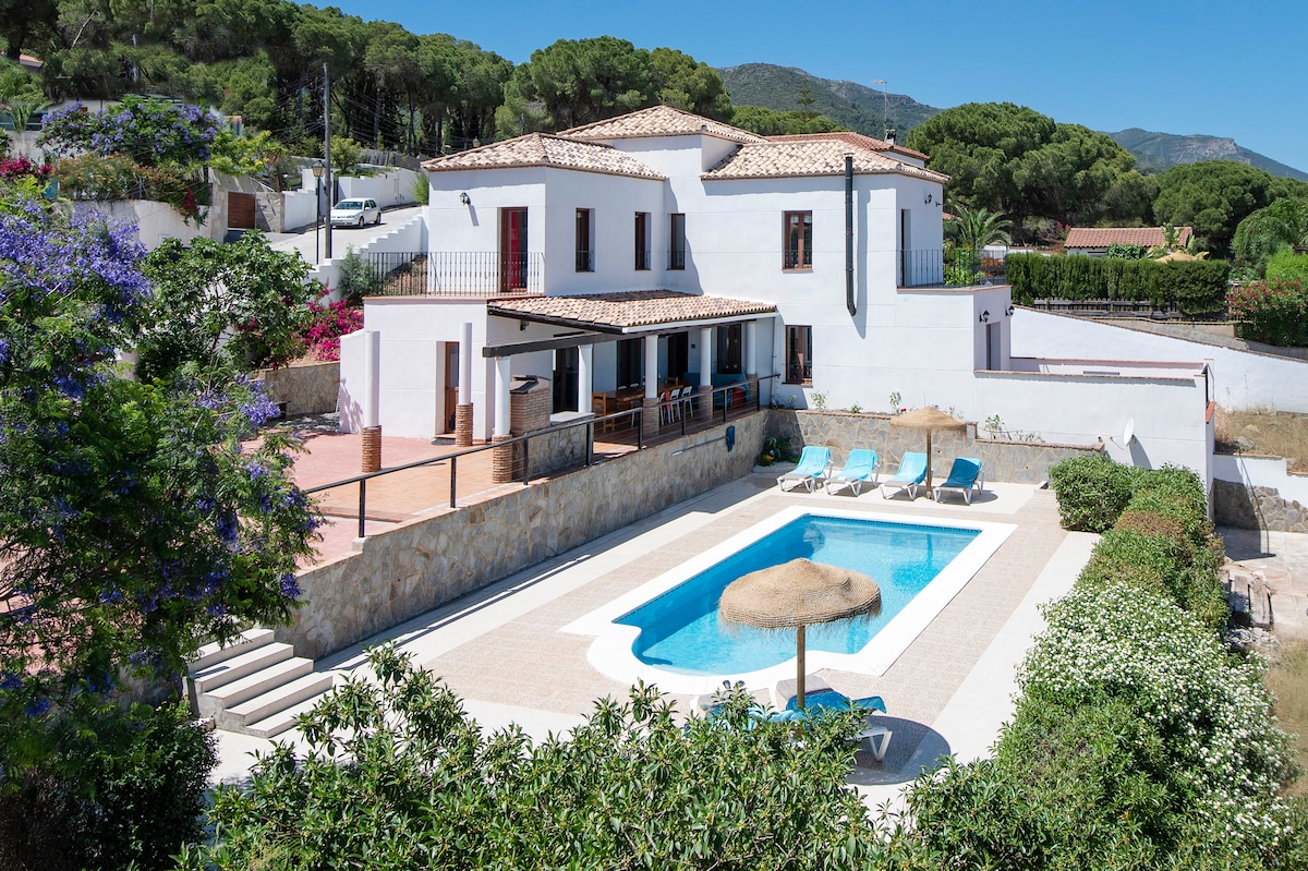 Beautiful Andalusian villa with amazing views for up to 8 people with private garden and pool, all set within landscaped gardens. The property is just 20 minutes from the beach and Malaga Airport and is a perfect place to use as a base to explore Andalucia. It is made up of 4 bedrooms and 2.5 bathrooms, all rooms are fully air conditioned. The house has extensive facilities including a large BBQ and very fast internet, making it the perfect place for family holidays or as a base to work from.