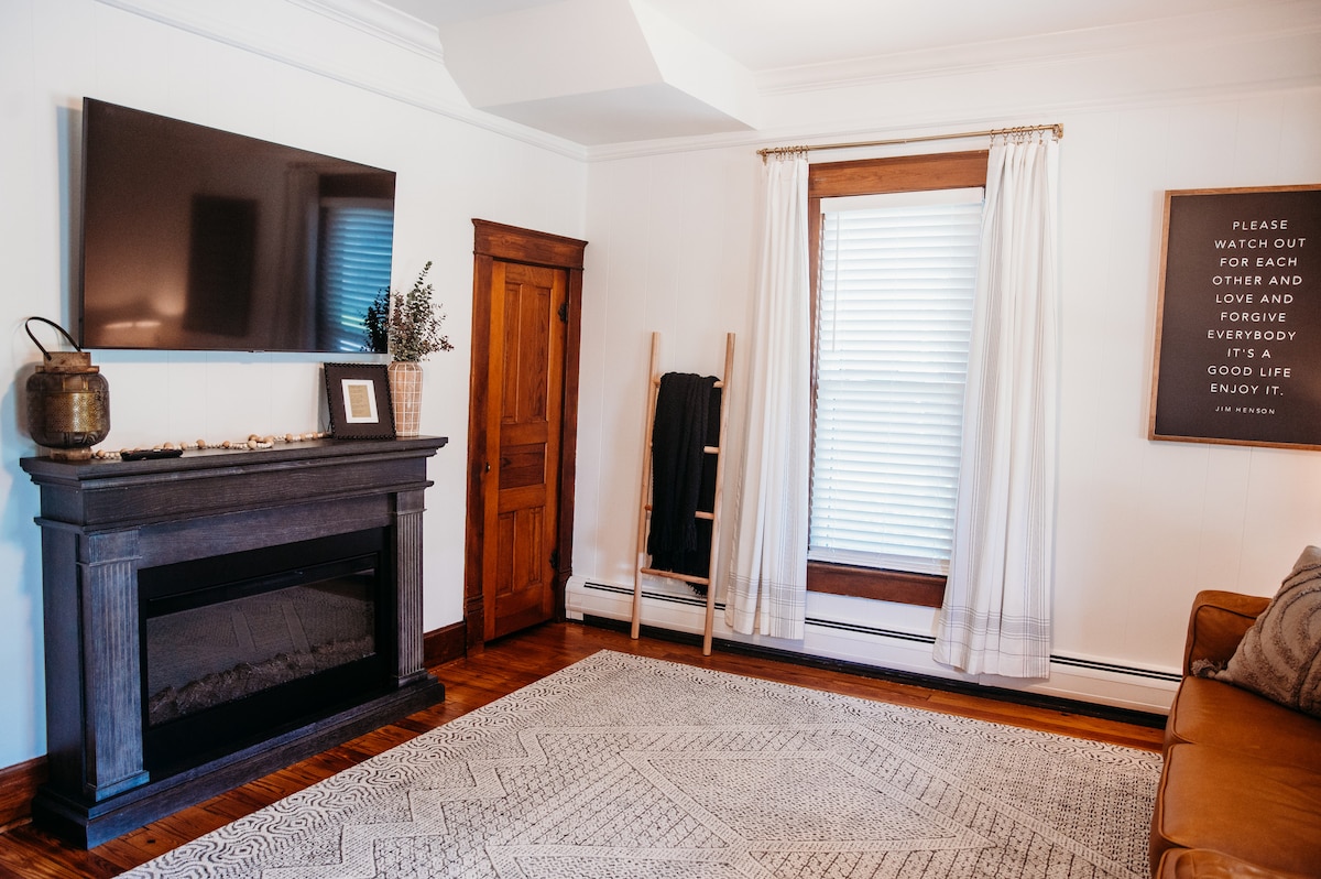 Цей затишний котедж одягнений у ніші з стилем середини століття! Вінтажне мистецтво та декор поєднуються з сучасною технікою та зручними меблями. Ви перебуватимете в безпечному та затишному сімейному районі, в двох кварталах від кави, ресторанів та вінтажних магазинів у чарівному центрі Тіпп-Сіті. Нагорі є ліжко queen-size і два близнюки. Внизу футон перетворюється на повнорозмірне ліжко. Примітка. Ми поруч із поїздом! Це чарівно, але якщо ви чутливі до шуму, вам, можливо, варто вибрати інше місце.