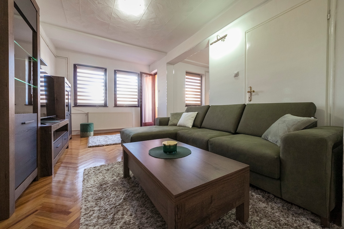 Opustite se sa celom porodicom u ovom mirnom smeštaju. Nalazi se u širem centru grada u neposrednoj blizini sportskog centra koji obiluje bogatim sadržajem u kome se mozete opustiti na otvorenom i zatvorenom bazenu, sauni, teretani, Turskom kupatilu. Na raspolaganju su tereni za mali fudbal, veliki fudbal, teniski tereni...u blizini apartmana nalazi se veći broj kafana, kafića i velikih marketa....