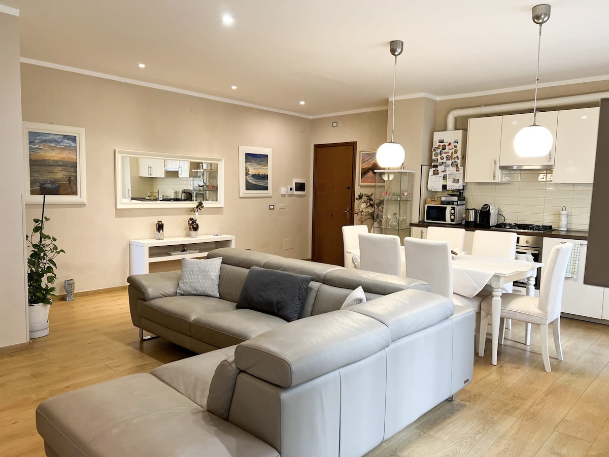 Чарівна, простора і сучасна квартира площею 78 кв. м, розташована в центрі. Комфортне помешкання розташоване в тихому районі, всього в 100 метрах від історичних міських стін і в двох кроках від історичних стін міста та в двох кроках від знаменитої площі Анфітатро, церков та інших історичних місць. Wi-Fi, також чудово підходить для розумних працівників, Netflix, Prime Video, Disney+, YouTube. Гостям доступні два велосипеди для прогулянок у повному відпочинку по місту. Безкоштовна або платна парковка, до квартири можна дістатися пішки.