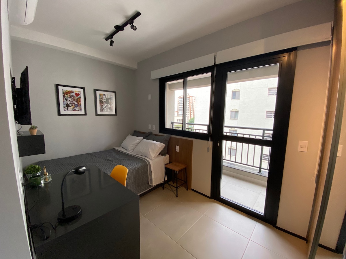 Ідеальний кондомініум для тих, хто любить бути ближче до моря, пляжу та відпочивати. Розташований перед пляжем у найкращому районі Сантоса. Квартира з балконом із видом на море, цілодобова стійка реєстрації з обслуговуванням, тренажерний зал, пляжний намет у кондомініумі на вихідних! Басейн на даху з видом на море! Крім 2 кондиціонерів(вітальня та люкс), плита, міні-бар, мікрохвильова піч, кухонне приладдя, 2 телевізори, вікна для закриття балкона. - PET FRIENDLY- - LATE-CHECK-OUT-, ЗАЛЕЖНО ВІД НАЯВНОСТІ ВІЛЬНИХ ДАТ
