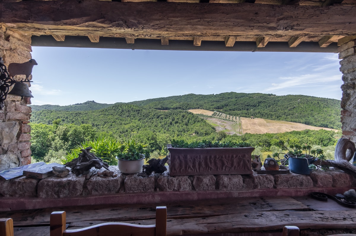 Heaven's Window takes your breath away. As our only guests, you will be surrounded by infinite views, endless tranquility, sounds of singing birds and calling deer. Down the valley and on your walks you may spot foxes ferrets and wild boar. Collect porcupine quills. Breathe! Halfway between Rome and Florence. Close to Siena, Val d’Orcia and countless hot springs . A private paradise surrounded by divine dining and hilltop jewels of antiquity like Montepulciano and Montalcino of sublime wines.