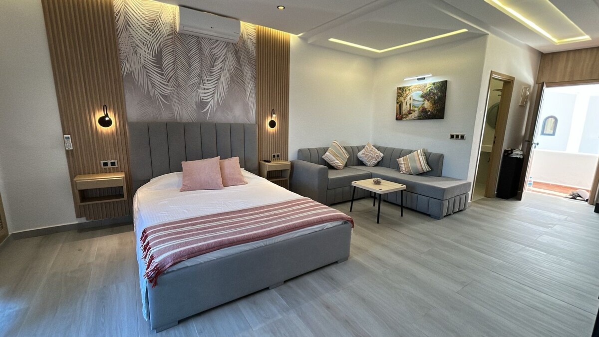 Насолодіться цією казковою квартирою-студією, яка має спальню з двоспальним ліжком, як сім’я або пара. У вашому розпорядженні також буде обладнана американська кухня. Безкоштовне та безпечне паркувальне місце для паркування вашого автомобіля. Басейн також доступний для мешканців з липня по серпень. Доступ до одного з найкращих пляжів у регіоні Танжер-Тетуан знаходиться в декількох хвилинах ходьби від резиденції.
