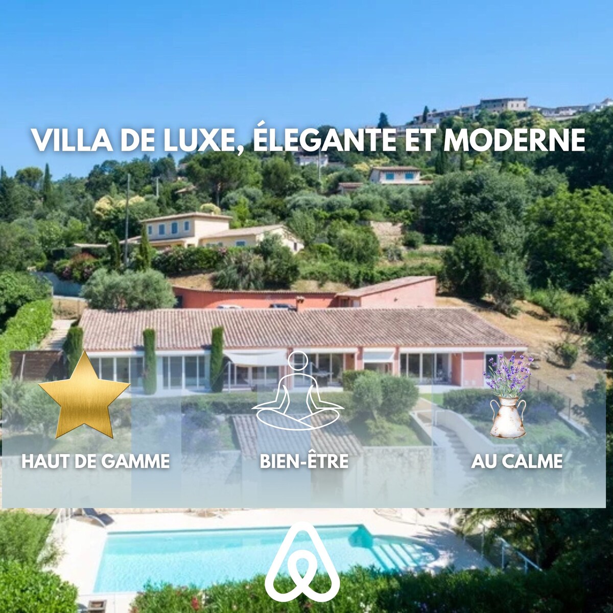 Окремий будинок, нещодавно побудований, на ділянці 1500 кв. м із басейном. Наш головний будинок розташований на території в декількох метрах від орендованого будинку. Помешкання огороджене та закривається моторизованими воротами. Будинок дуже тихий, оточений зеленню. Море знаходиться на відстані менше 5 км. Аеропорт Ніцца Лазурний берег 15 хвилин на автомобілі. Кань-сюр-Мер розташований між Ніццою та Каннами, недалеко від Сен-Поль-де-Ванс та основних туристичних об’єктів.