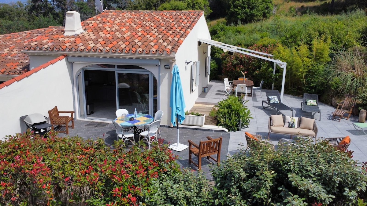 Дуже красивий вид на море на 180° і гору , архітектурна вілла 2022 року на 150 м2 в 3 хвилинах від пляжу, ресторанів і магазинів, відкритих цілий рік. Цей будинок має великий приватний басейн з підігрівом, джакузі , високоякісна кухня Bulthaup, відкрита планча, велика вітальня з диваном/ліжком, камін, 3 спальні, включаючи головний апартамент, 2 ванні кімнати, домашній кінотеатр, Wi-Fi ... У вас є тераса на даху з видом на західне море для чарівних закатів...