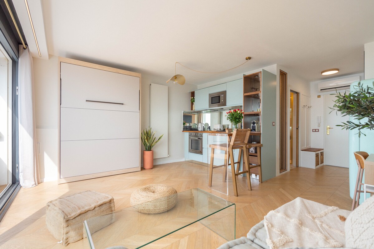 Дуже гарна квартира площею 50 м², яка пропонує всі зручності для екзотичного перебування пар, сімей або груп друзів . Вона має стрільбну терасу, щоб насолоджуватися сонцем, спальню та приватне паркувальне місце в підвалі. Її розташування забезпечує легкий доступ завдяки метро, 5 хвилинах ходьби до центру міста, пляжів та стадіону Велодром. Для любителів спорту та шоу велодром знаходиться в 700 м від квартири. Парк Чанот: 15 хв пішки.