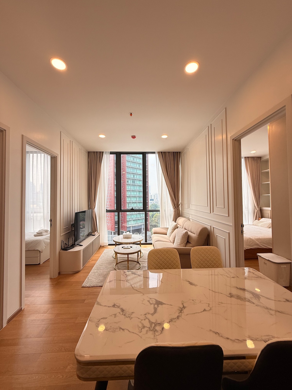 Відкрийте для себе власний оазис у найексклюзивнішому районі Бангкока, де сучасний дизайн поєднується зі спокійною розкішшю. Вас оточать ретельно підібрані меблі, м’яке освітлення та кам’яні стіни спальні, що запрошують вас відпочити в стилі. Незалежно від того, чи ви тут, щоб відновити сили, чи щоб справити враження, цей вишуканий відпочинок – ваш ідеальний вибір, створений для тих, хто прагне краси, спокою та легкої елегантності просто в центрі міста. Забронюйте зараз, щоб відчути Бангкок, як ніколи раніше