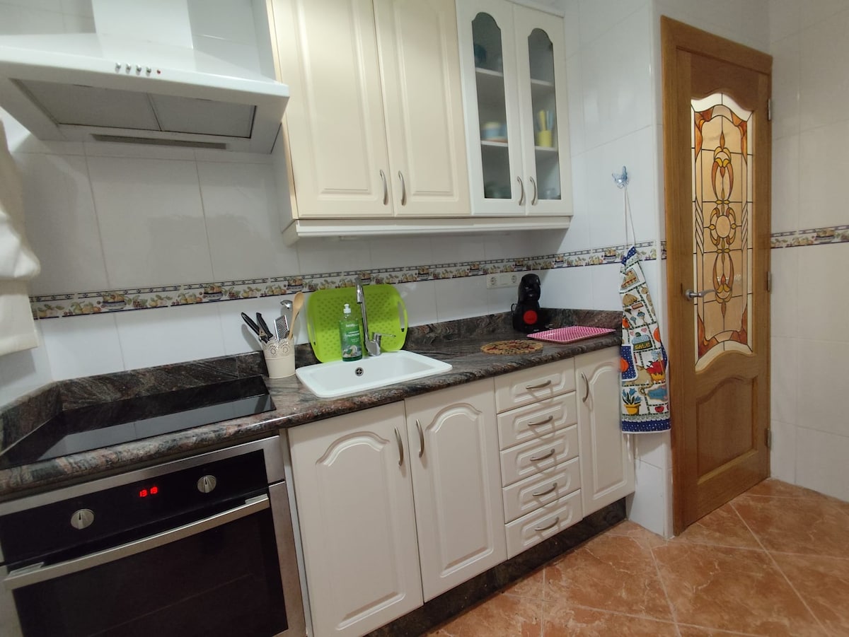 Розташована на другій лінії пляжу. В 150 метрах від моря з швидким і легкодоступним. Дуже тихий район, далеко від шуму та з безліччю сусідніх послуг, таких як ресторан, кафетерій, пекарня, супермаркет, преса тощо. Автобусна зупинка неподалік. Оснащений кондиціонером і опаленням. Кухня обладнана стільницею, мікрохвильовою піч, духовкою, холодильником, посудомийною та пральною машинами. Дуже яскравий і добре провітрюється. Це четвертий поверх без ліфта.