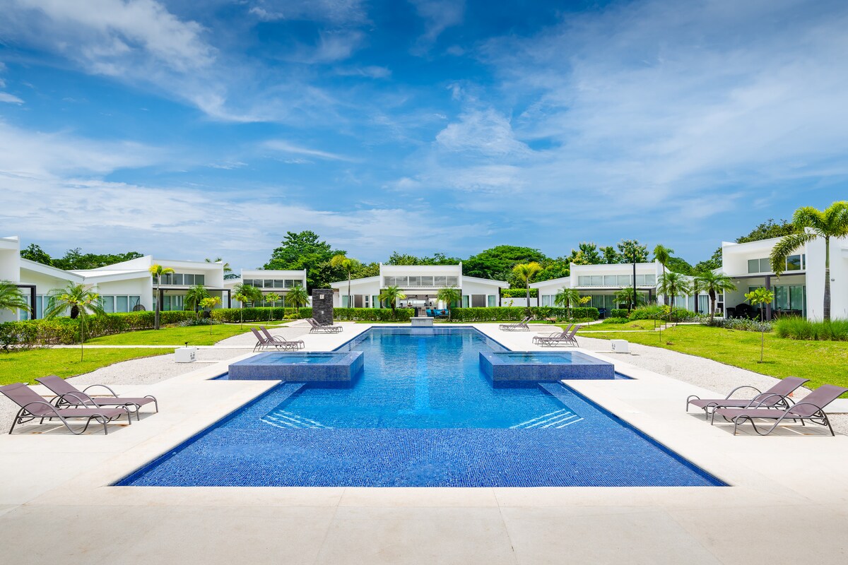 Красивий гостьовий будинок із 3 спальнями в закритому будинку Hacienda Pinilla, розташований в ексклюзивній приватній громаді Авельянас,всього в декількох кроках від пляжу Авельянас. Тихий,спокійний і всього в 15 хвилинах від пляжного міста Тамариндо. Гостьовий будинок Plumeria — це двоповерховий будинок з трьома спальнями з повним кондиціонером, унікально розроблений, щоб відчувати себе зануреним у природу, перебуваючи лише в 60 футах від пляжу та на близькій відстані від серфінгу, Lola's та Beachclub