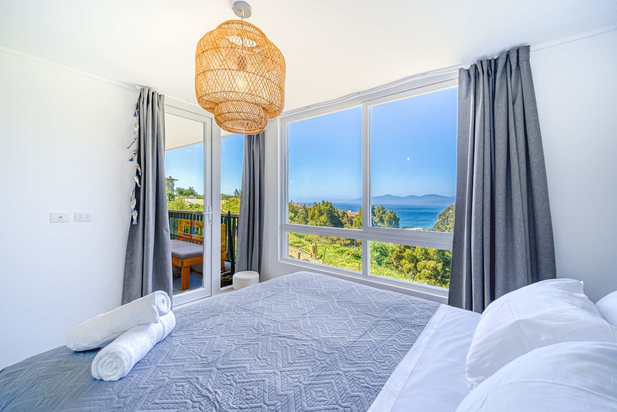 Дуже туристичний район, пляжі, серфінг, їзда на велосипеді, піші прогулянки, верхова їзда, нічне життя, ресторани. Розташування в центрі, з ліфтом до пляжу Абаніко, ресторанів, супермаркету, церкви та послуг. Квартира нова, в першому ряду, з вражаючим видом на океан. Він знаходиться на першому поверсі, має терасу та сад. 2 спальні з окремими ванними кімнатами. Він підходить для пар, любителів пригод і сімей. Чудова доступність на громадському транспорті, 2 години від аеропорту Сантьяго.