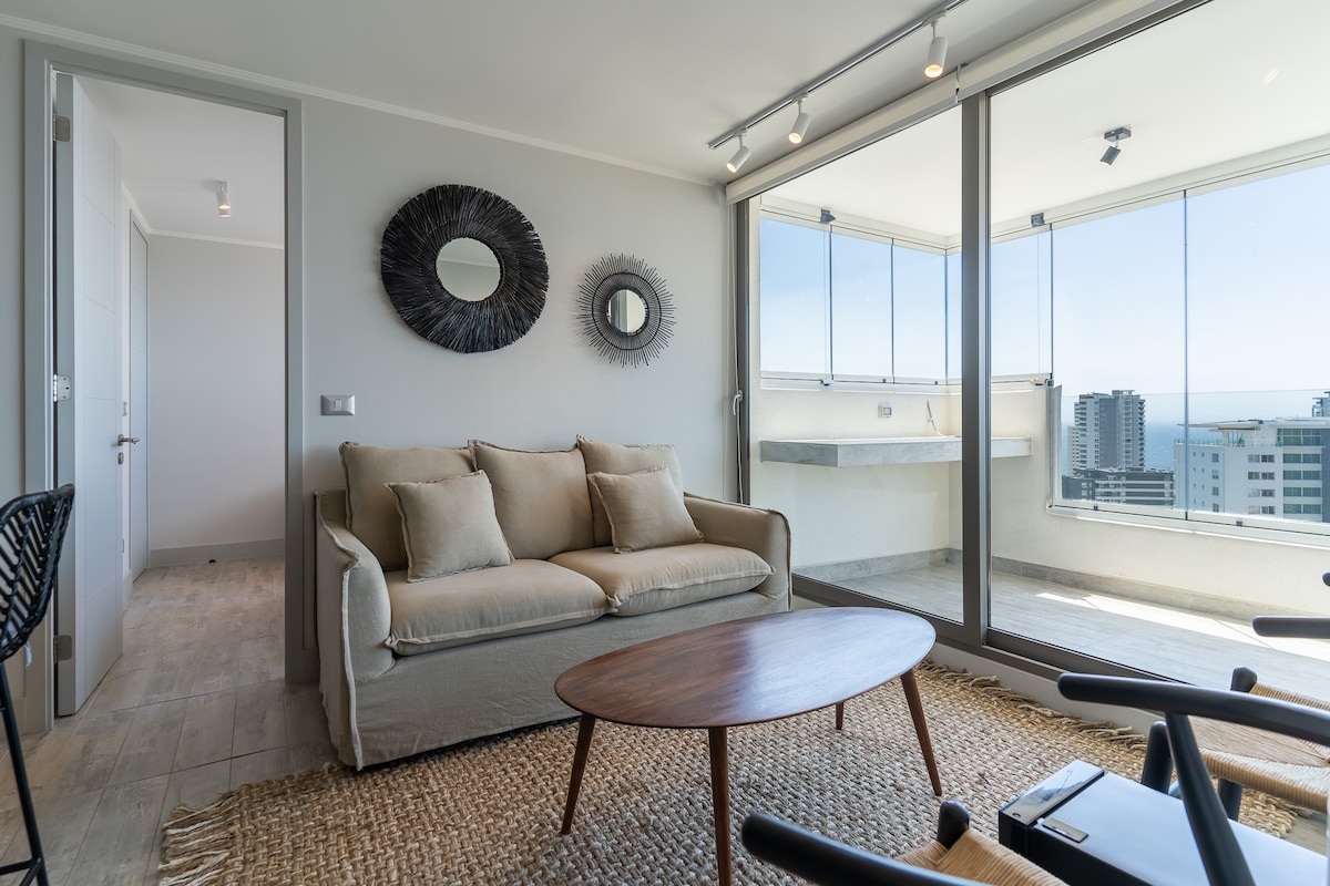 Ефектна квартира перед пляжем Кочоа, з приватною панорамною терасою площею 80 м2. Унікальний досвід для любителів звуку моря та тих, хто любить листівки на заході сонця з неймовірним видом на Вальпараїсо. Добре обладнана квартира на 6 осіб розташована в кондомініумі Eurovista. Тут є відкритий басейн, ресторан, помірний басейн і джакузі. Крім того, ви можете користуватися сауною, тренажерним залом, столом для басейну, пінг-понгом, сапсерфінгом і різноманітними каналами (за окрему плату).