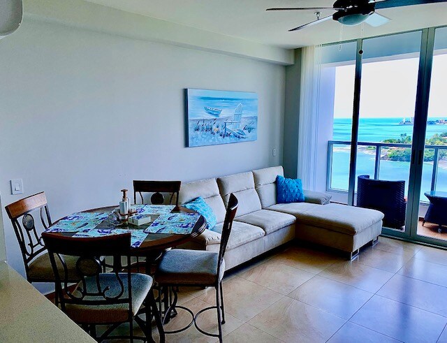 ВРАЖАЮЧА ПОВНА розкішна квартира з 3 спальнями (всі з видом на море), 2 ванні кімнати з туалетом і ванна КІМНАТА для гостей; обслуговування кімнати та ванної кімнати. Вишукана обробка, кухня з 100% нержавіючої сталі та кондиціонер по всій квартирі для високої ефективності. Кондомініум з концепцією «Hotel Style Living»; ресторан і бар для вечорів (з четверга по неділю), закусочна в зоні басейну та бар Tiki на пляжі, а також волейбольний корт, теніс, баскетбол.