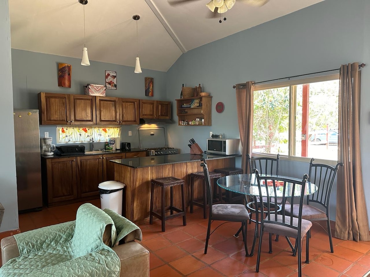 Унікальний будинок у Лос-Сантосі! Це помешкання - 60-річний панамський дерев 'яний будинок, який був відремонтований, зберігаючи при цьому свій шарм. 2 спальні (головна спальня з ліжком king-size, друга спальня з двоспальним ліжком), 1 ванна кімната, повністю обладнана кухня з просторою вітальнею та їдальнею. 1 закритий і безпечний офіс з кондиціонером з усім необхідним обладнанням (офісний стілець, монітор, дверний код...) Кондиціонер лише в офісі, решта будинку з вентиляторами! Папайя, наш кіт, живе в будинку!