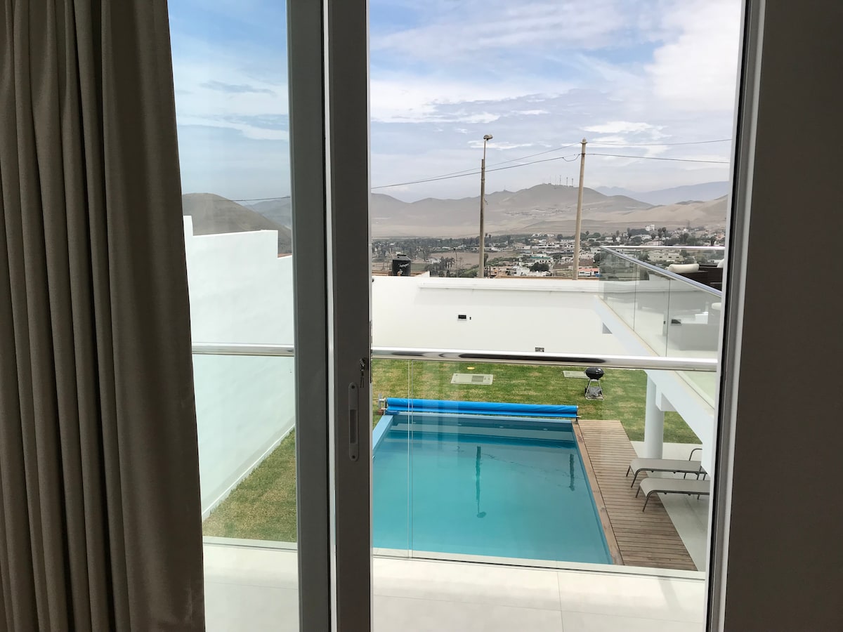 Venez apprécier cette vue magnifique de la plage "Playa Chica"de Santa Rosa, Lima et ses îles, ses vagues sont parfaites pour le body board, apprendre le surf ou pêcher au lancer. Une maison relax avec de grands espaces. A 10 minutes à pied de la plage, 10 minutes en voiture de la fameuse plage d'Ancon et 30 à 45 minutes de l'aéroport de Lima. Vous pourrez profiter de la maison (265 m²) et de sa piscine de 4X7 mètres. (1.20-2.40 m.) Vous serez dans le calme et la tranquillité.
