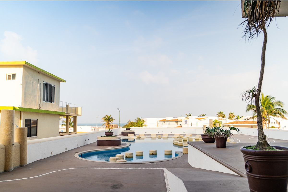 Amplio Depto con alberca frente a Playa Miramar