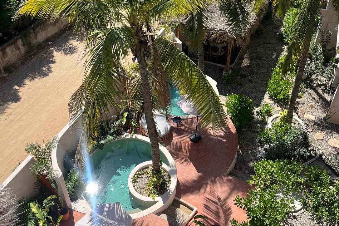 Двомісна кімната знаходиться на першому поверсі, пропонуючи комфортний, прохолодний і тихий простір, ідеальний для відпочинку або віддаленої роботи. Його богемно-тропічний дизайн створює розслаблюючу атмосферу, ідеальну для приємного перебування. У ньому є два ліжка розміру queen size, кондиціонер, вентилятор, телевізор, Wi-Fi, окрема ванна кімната, мінібар, кавоварка Nespresso та кухонний бар. Як гість ви можете насолоджуватися загальними зонами, такими як басейн, коворкінг, вітальня, обладнана кухня та система відеоспостереження.