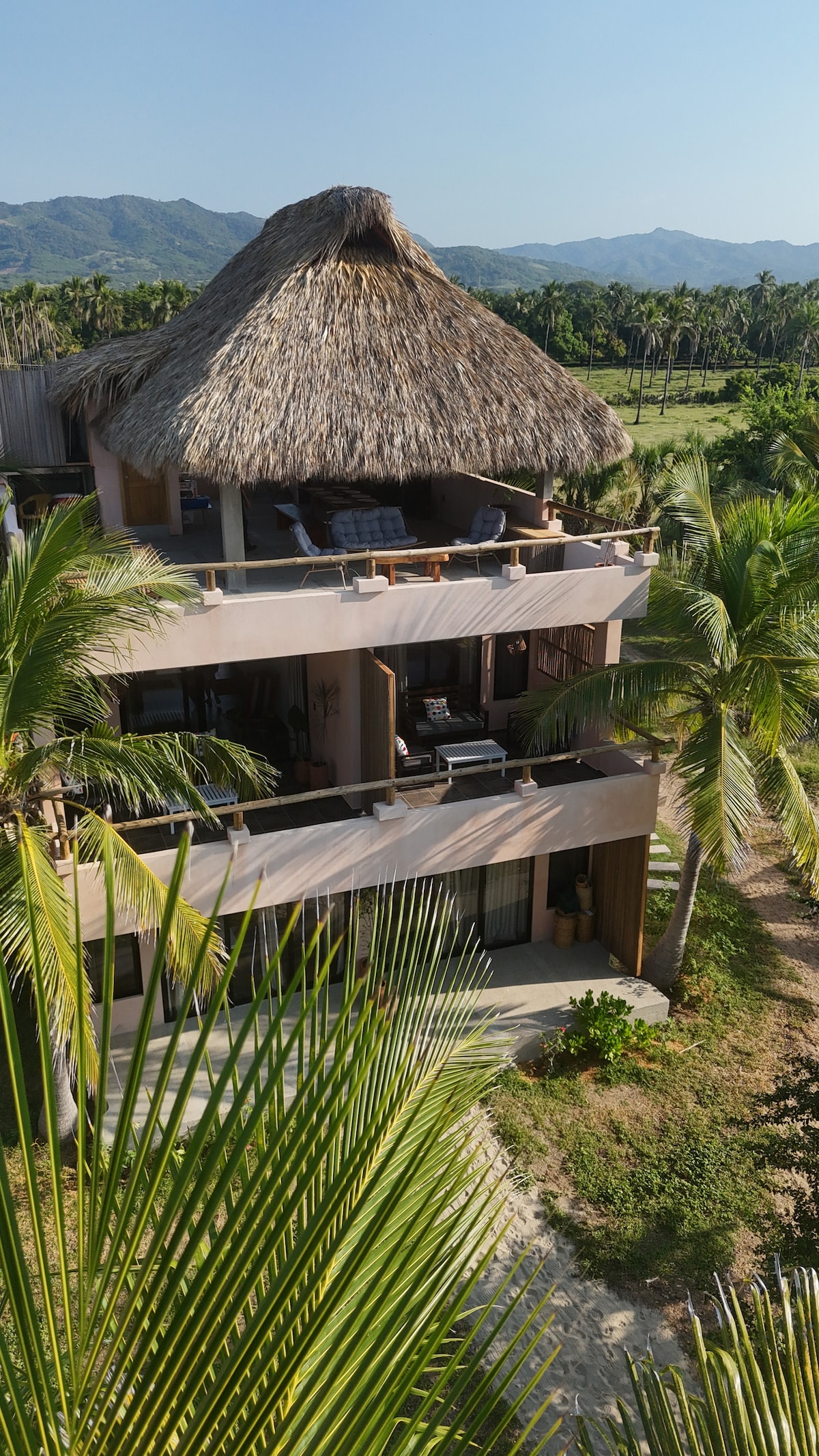 Квартира з 2 кімнатами та 2 ванними кімнатами, доступ до пляжу, високошвидкісний Wi-Fi Starlink, дивовижна відкрита квартира з найкращим видом на океан у Пуерто-Ескондідо. Насолоджуйтеся чудовим подвійним дахом палапа, свіжим і повітряним. Будівництво поруч вже закінчилося Ідеальне місце для відпочинку — дві вітальні з терасами. Пляж на території, 2 відкриті басейни та приватний басейн з підігрівом (за запитом) у квартирі Приголомшливі види на океан для любителів природи, які очікують побачити й почути тропічні ліси та звуки океану вночі.