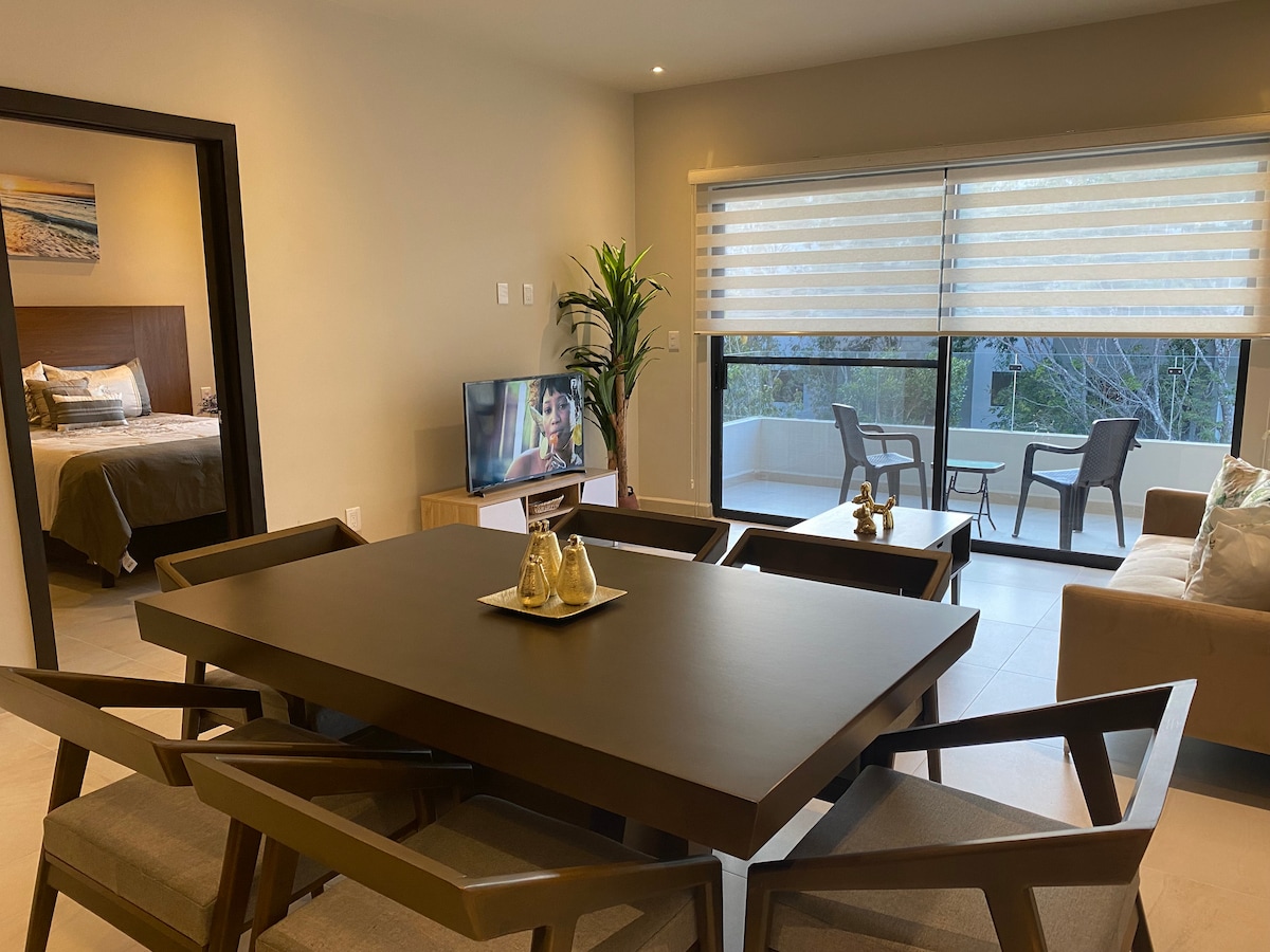 Ідеально підходить для насолоди найдивовижнішим перебуванням у Плайя-дель-Кармен! Біля найкращого пляжу, 5-го проспекту, ресторанів і магазинів, але далеко від шуму нічного життя. Квартира пропонує вам усі зручності, які вам можуть знадобитися, і розташована в абсолютно новому красивому кондомініумі, сучасній будівлі з дахом, басейном, тренажерним залом і з найкращим розташуванням!