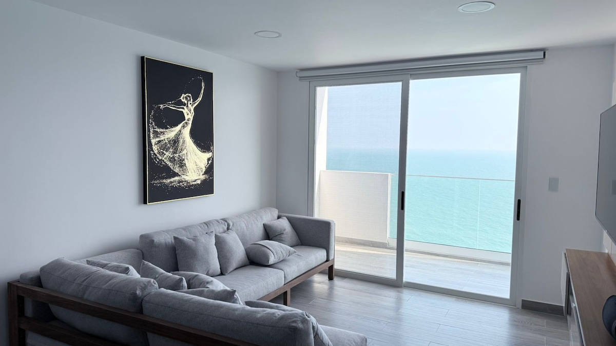 “Modern oceanfront apartment with a stunning 180° panoramic view. Features 3 bedrooms with King beds and private bathrooms, 80 Mbps fiber-optic Wi-Fi, Netflix-enabled TVs in each room, and private parking. Perfect for families, couples, or business travelers seeking comfort and an unbeatable location.”
