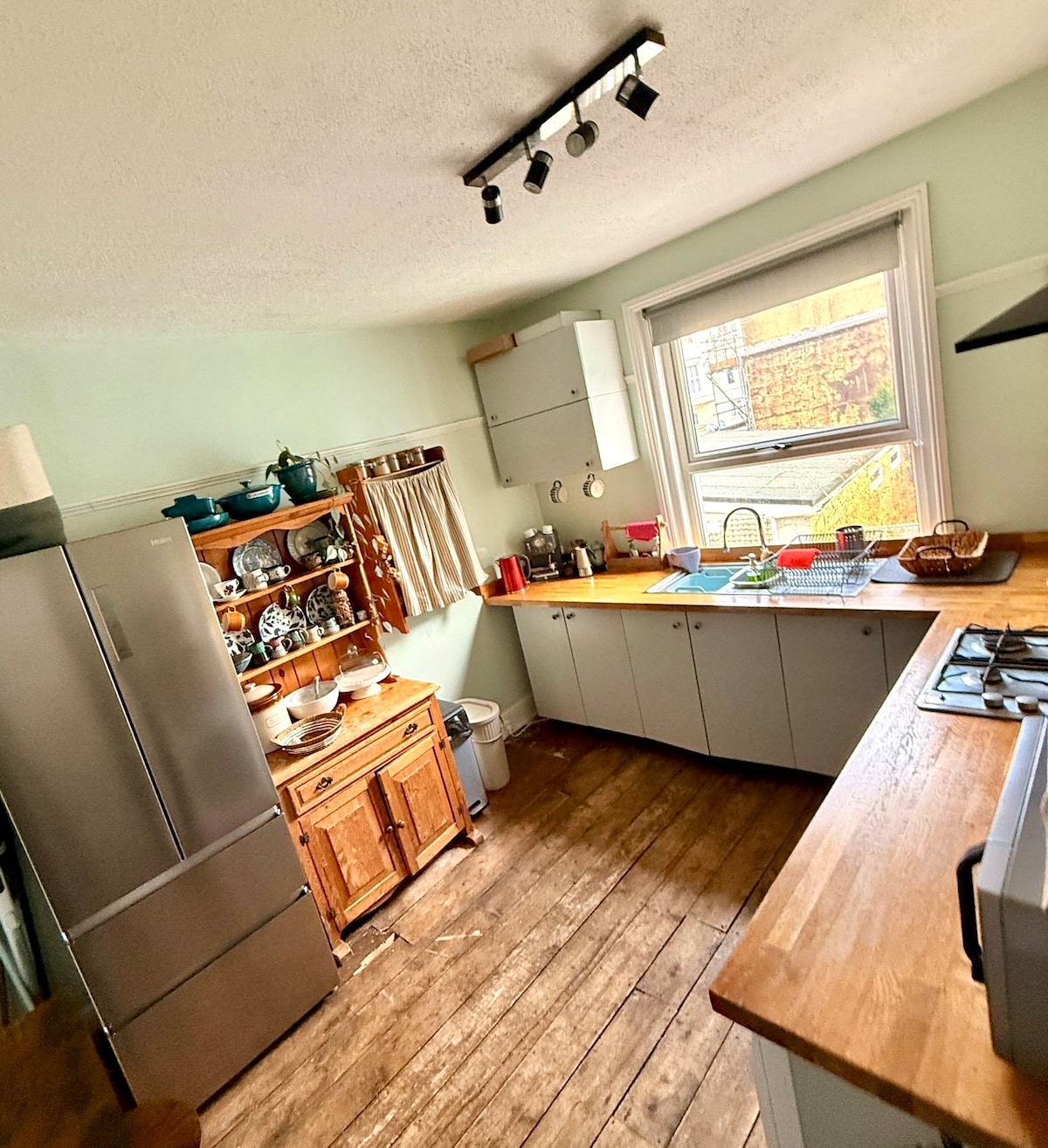 Чудова, простора квартира, що виходить на південь, з приголомшливим видом на море, оригінальними особливостями та високими стелями. Сходи/сати сонця та відбитки місяця захоплюють дух! Між Сент-Леонардс на морі та Гастінгсом і за 30 секунд до пляжу! У спальні є ліжко розміру «king size», а у вітальні - двоспальний диван-ліжко. Постільна білизна - це бавовна/постільна білизна, випрана нетоксичними продуктами. Квартира розташована на 3-му поверсі, але не так багато сходів і тому вид на море далеко від шаленого натовпу! Поруч є безкоштовна парковка
