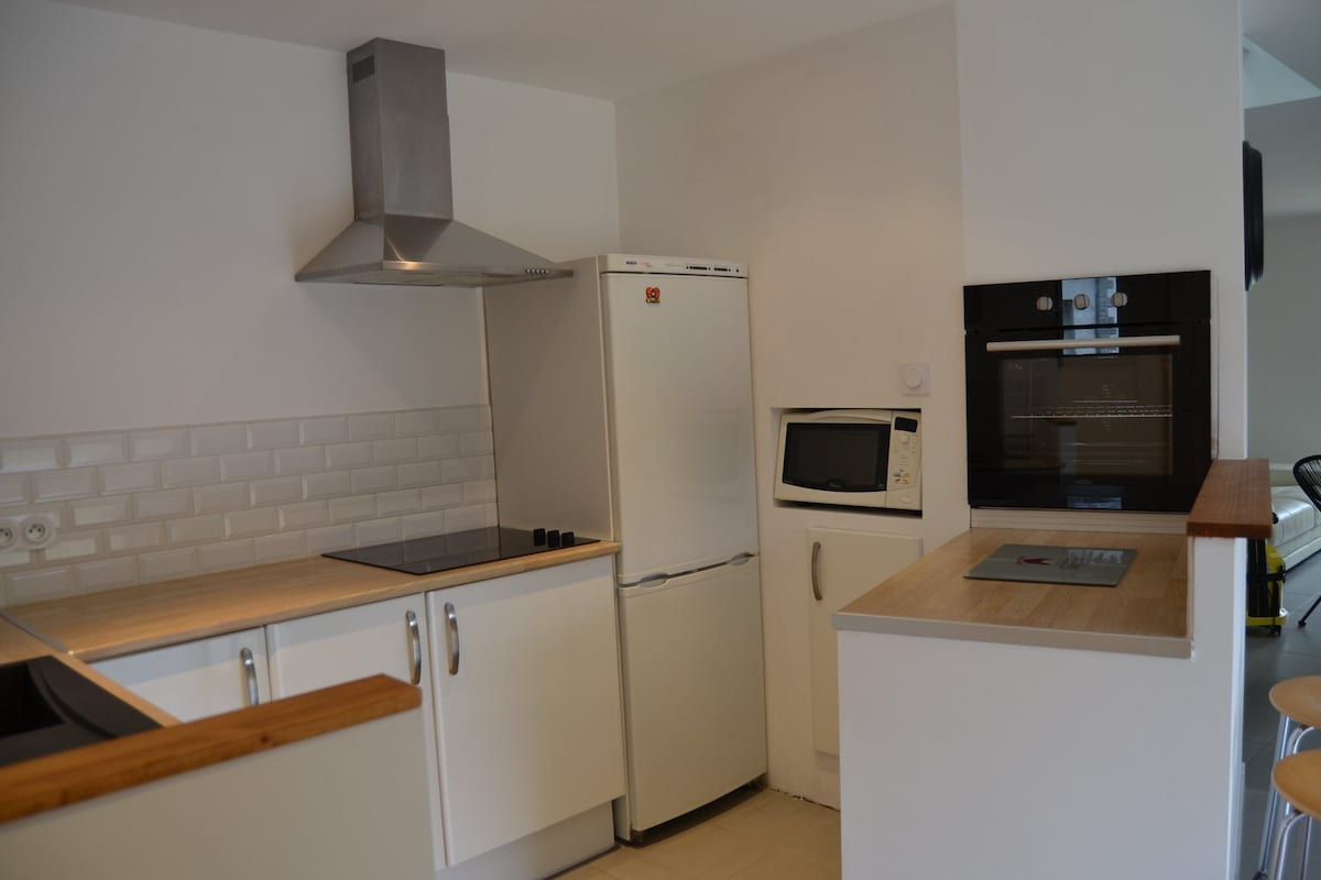 Насолоджуйтеся яскравим помешканням, ретельно оформленим і розташованим в центрі історичного центру Понтиви. Чарівна повністю обладнана однокімнатна квартира. Він складається з входу з видом на вітальню з обладнаною кухнею, їдальнею та диваном з телевізором. Спальня з двоспальним ліжком і місцем для зберігання. Ванна кімната з душем і туалетом. Мийна машина. Вхід у будівлю за захищеними дверима (цифровий код) Постіль надається (простирадла, рушники, рушники тощо) і ліжко робиться.