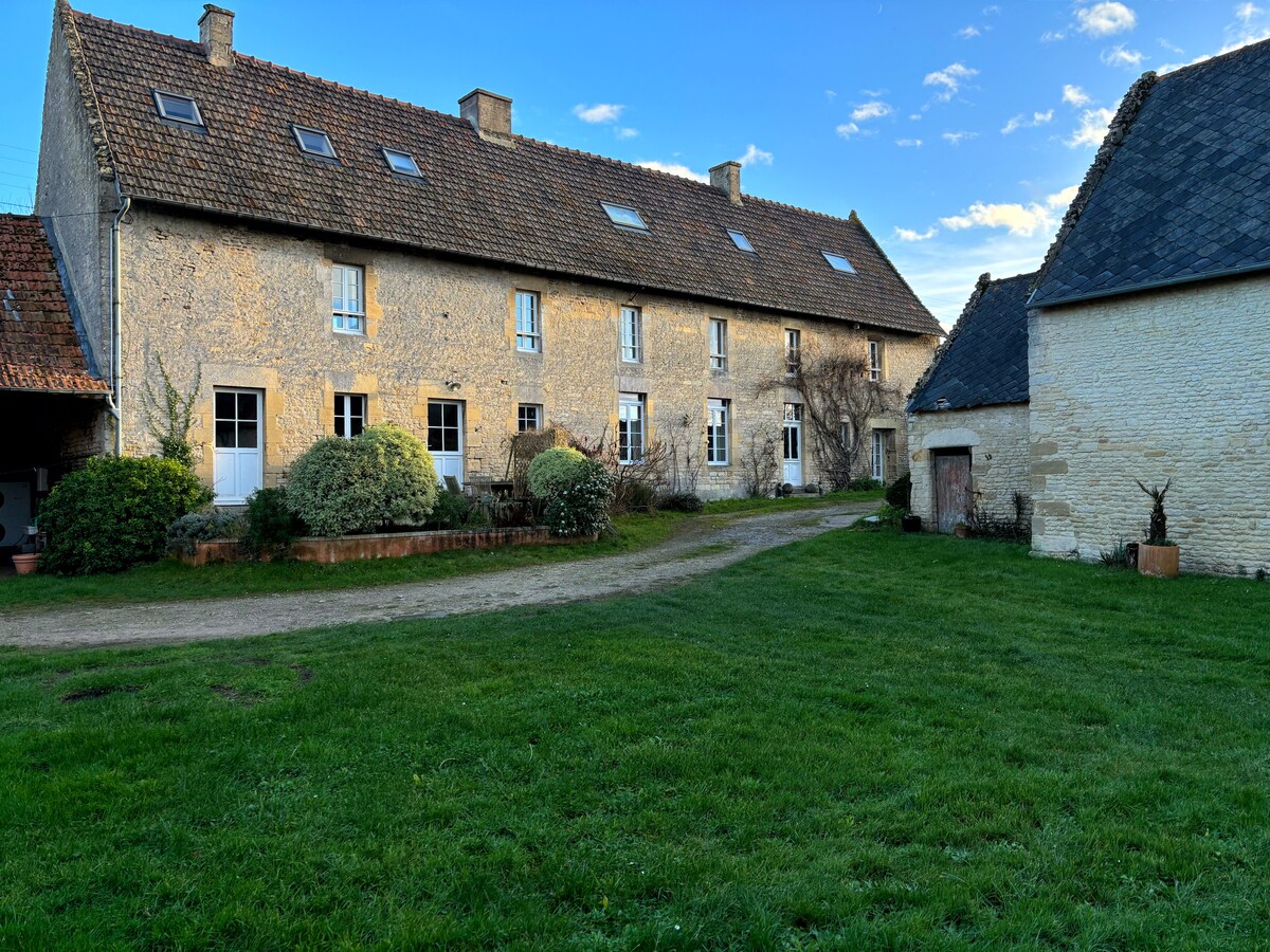 Недавно відремонтований старий будинок кінця XVIII століття. Запропоноване розміщення відповідає 2/3 будівлі, ліворуч. Гості можуть мати окремий вхід та повністю відведені вітальні. Зовні затишок у сільській місцевості дозволяє заряджати акумулятори. Сторона діяльності: більярдний стіл, настільні ігри, майданчик для петанку, велосипед, близькість до тварин. Будинок розташований за 18 км від Байо, за 25 км від Кан і десантних пляжів, за 1 годину від Мон-Сен-Мішель.