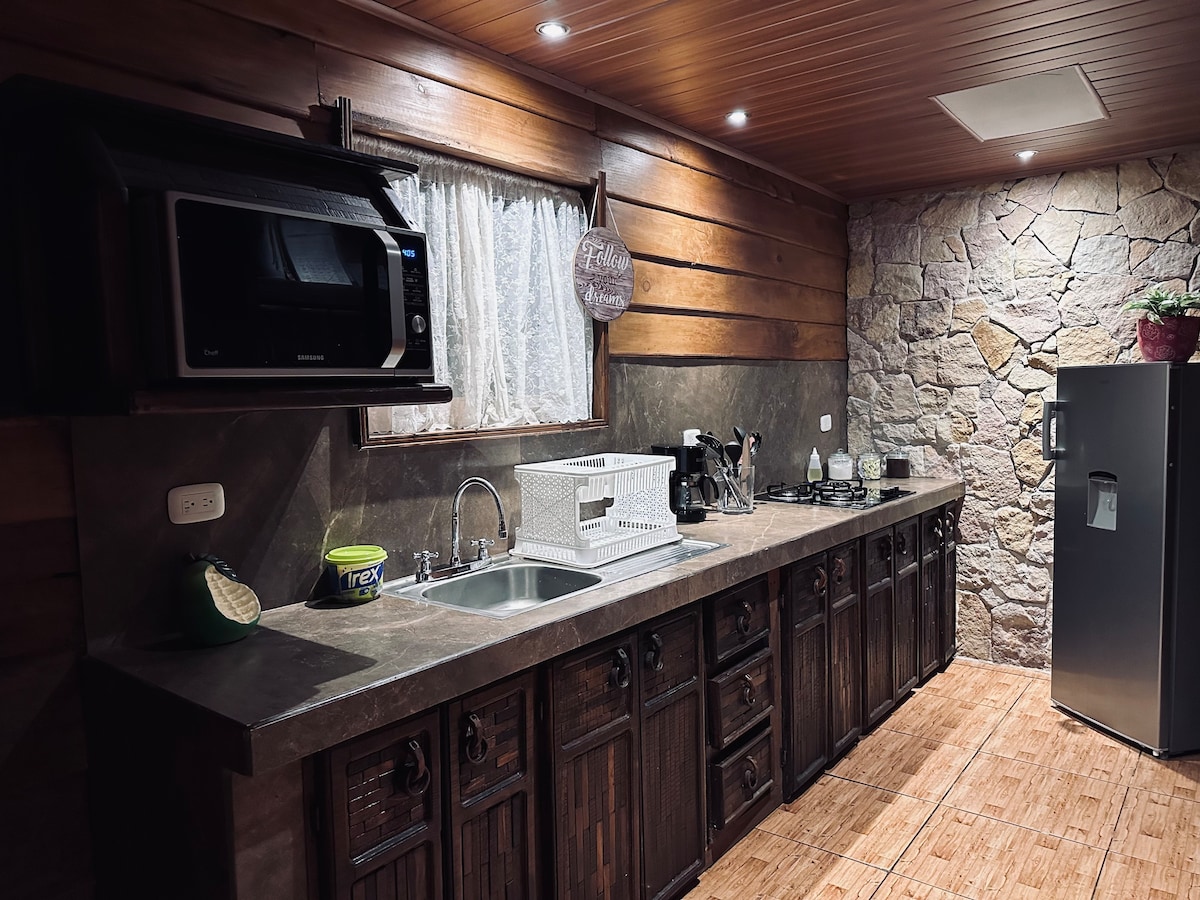 Зруб у 10 хвилинах від входу на вулкан Поас. Насолоджуйтеся спокійним відпочинком у нашому зрубі в Поасі, Алахуела, ідеально підходить для 2 осіб. Тут є двоспальне ліжко, ванна, окремий балкон і гаряча вода. Приготуйте їжу на кухні, обладнаній невеликим холодильником, електричною сковородою, рисоваркою та кавоваркою. Розташоване біля вулкана Поас, це ідеальне місце для відпочинку та єднання з природою