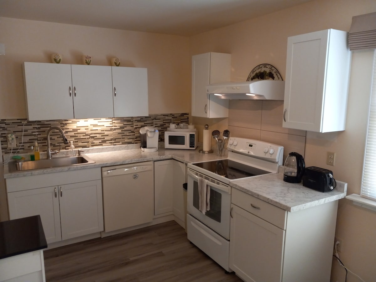 Будинок має 3 спальні. У головній спальні є окрема ванна кімната. Дві інші спальні мають повну ванну кімнату. У залі є кавовий/чайний візок з машиною Keurig K-cup, чашками, ложками, виделками, ножами та закусками. Також є невеликий холодильник і мікрохвильова піч. Кухні немає. Холодильник матиме безкоштовну бутильовану воду та половину. Повідомте, якщо ви хочете ще щось у холодильнику, наприклад, молоко або жирні вершки для кави/чаю.