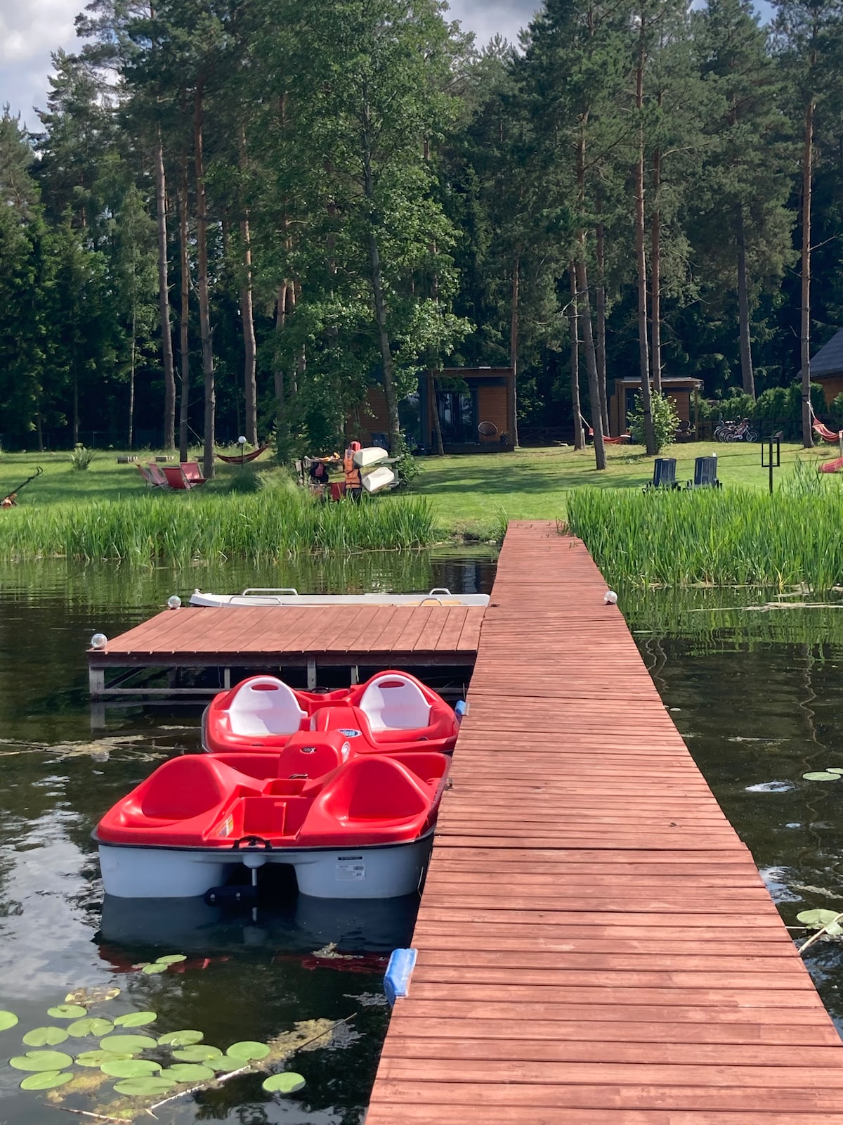 Domek w typie "cabin" na ogrodzonym, dużym i zadrzewionym ogrodzie. Prawie 1000 m2 zieleni sprawia, że jest tu pełna prywatność. Okolica jest spokojna. Trzy piękne duże jeziora w odległości 500-700 m Goście mogą liczyć na prawdziwą odskocznię od zgiełku, rozpalić w kominku, wsłuchać się w szum drzew, kumkanie żab i śpiew ptaków. Tutaj przyjedziesz złapać oddech w bezpiecznym miejscu na łonie przyrody, w sercu Pomorza Kaszubskiego.