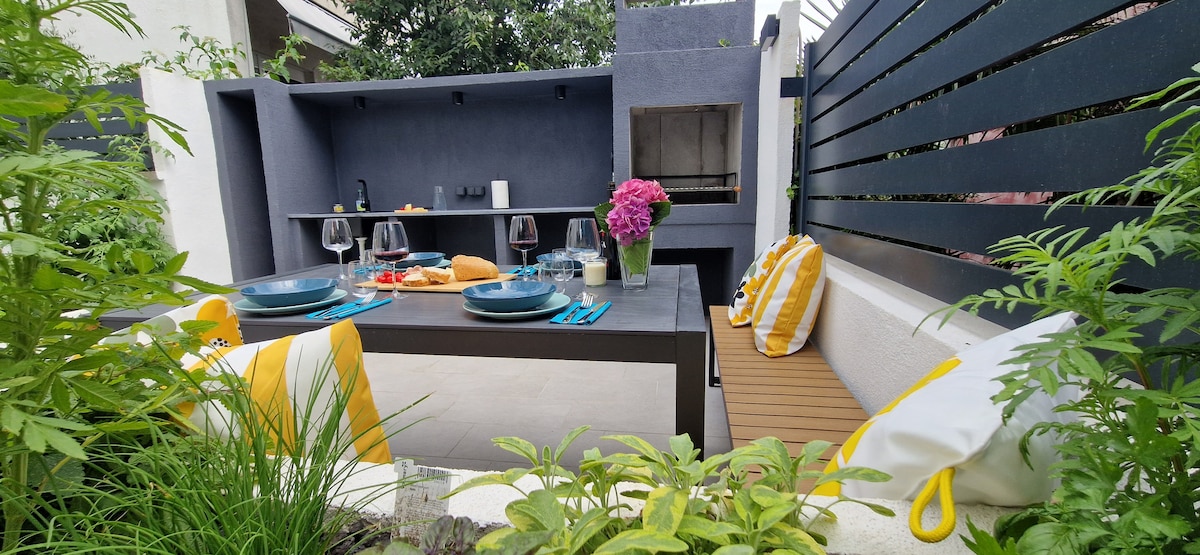 Наша квартира Urban Secret у Рієці (Кантріда ) ідеально підходить для вас, незалежно від того, чи хочете ви провести довгу або коротку відпустку. Ви можете відпочити в огородженому приватному саду, обладнаному зовнішніми меблями та барбекю. Ви можете насолоджуватися приготуванням їжі на повністю обладнаній кухні і навіть збирати трави у своєму саду... Знамениті пляжі Плоче та Віла-Нора знаходяться всього в декількох хвилинах ходьби, а до собачого пляжу також можна дістатися пішки. На вулиці є безкоштовна громадська парковка.