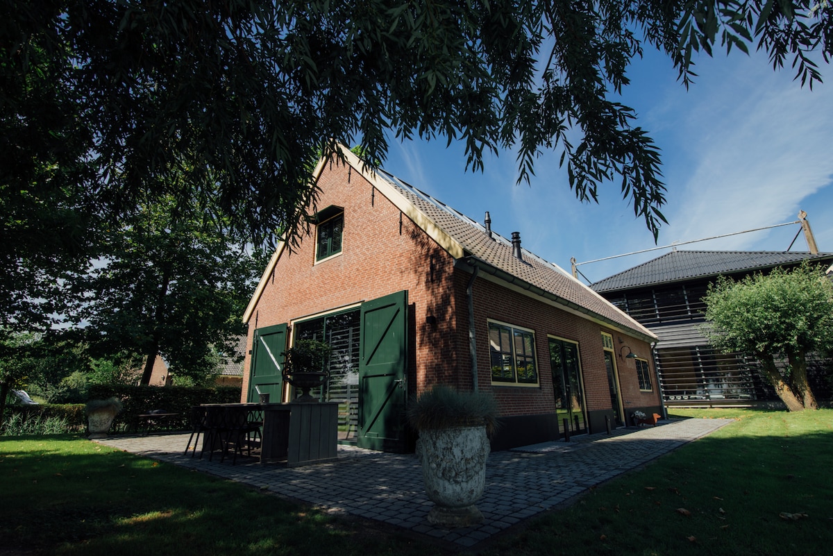 Наше помешкання зі сніданком обладнане всіма сучасними зручностями, такими як сучасна кухня, освітлення Philips Hue, смарт-телевізор і Quooker. На затишному ґанку є розкішне джакузі та дров 'яна піч. B&B з великим приватним садом і безбар 'єрним краєвидом повністю захищений від фермерського будинку огорожею і доступний лише для вас як гостя. З фінської сауни на сусідній терасі можна подивитися на мальовничі міські луки. Смачний сніданок на ваш смак необов 'язковий.