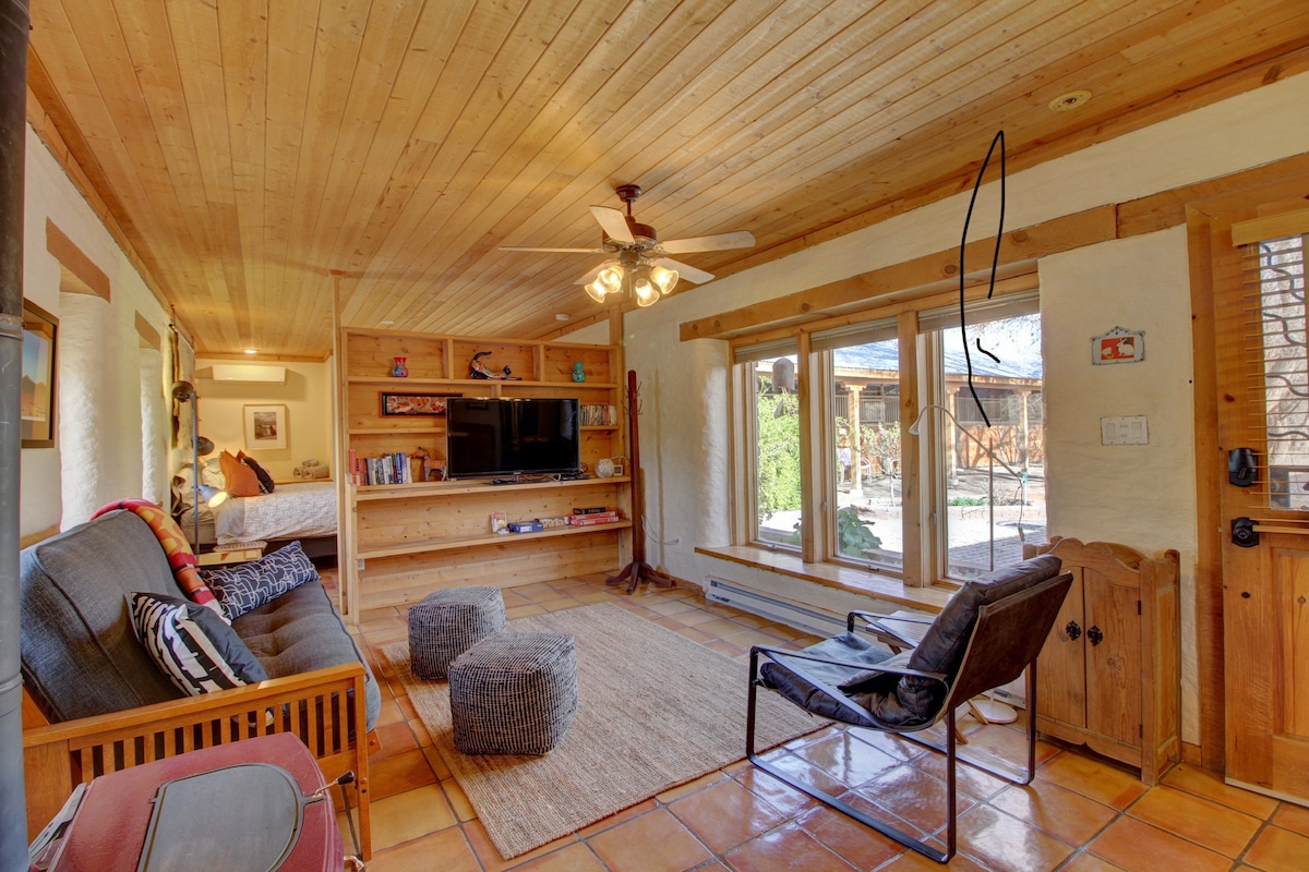 Наш приватний будиночок розташований у соснах, звідки відкривається вид на каньйон, і знаходиться всього в 5 хвилинах їзди від LANL, Fuller Art Lodge та історичного району. Ви зможете насолодитися розкішним ліжком queen-size (завширшки 150-179 см), спа-зоною та повністю обладнаною міні-кухнею (з усіма ласощами!). Світлі вікна залишають простір світлим та яскравим. Відпочиньте на території з приватним патіо та проїздом. Легко дістатися до Банделє, лижної гори Пахаріто та центру міста на шатлі або автомобілі. Нехай наш будинок стане вашим домом далеко від дому!