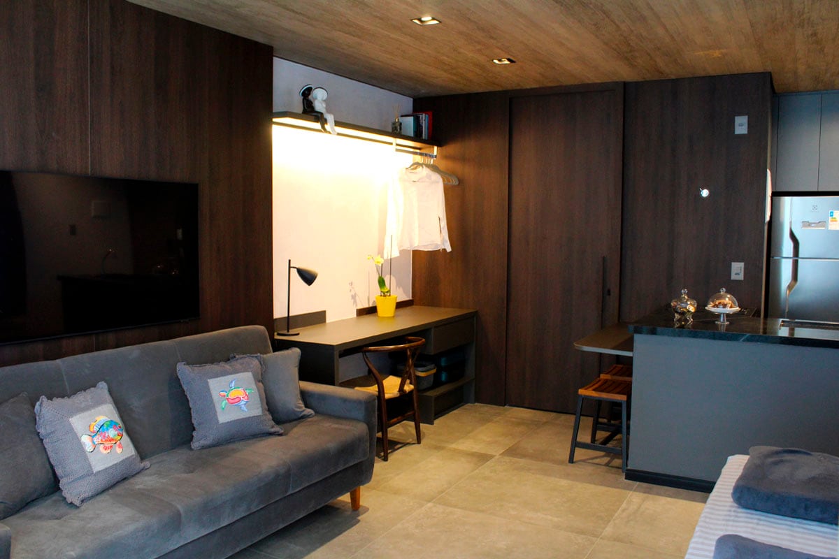 Quarto e sala em frente ao mar.