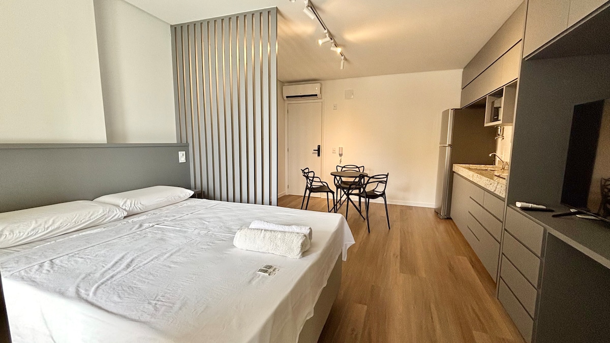 ІДЕАЛЬНЕ ЦЕНТРАЛЬНЕ РОЗТАШУВАННЯ! Надзвичайно затишний простір, продуманий до найдрібніших деталей, щоб забезпечити ваш комфорт і добробут! У самому центрі Вісоси, ви будете в 10 хвилинах ходьби від 4 стовпів UFV. Повне обладнання: смарт-телевізор, міні-бар, плита, мікрохвильова піч, сендвічниця, кавоварка, блендер, аерогриль, диван-ліжко, додаткові матраци. РОЗМІЩЕННЯ ДО 4 ОСІБ. Тому за більше ніж 2 осіб за ніч стягується додаткова плата в розмірі 50 реалів.