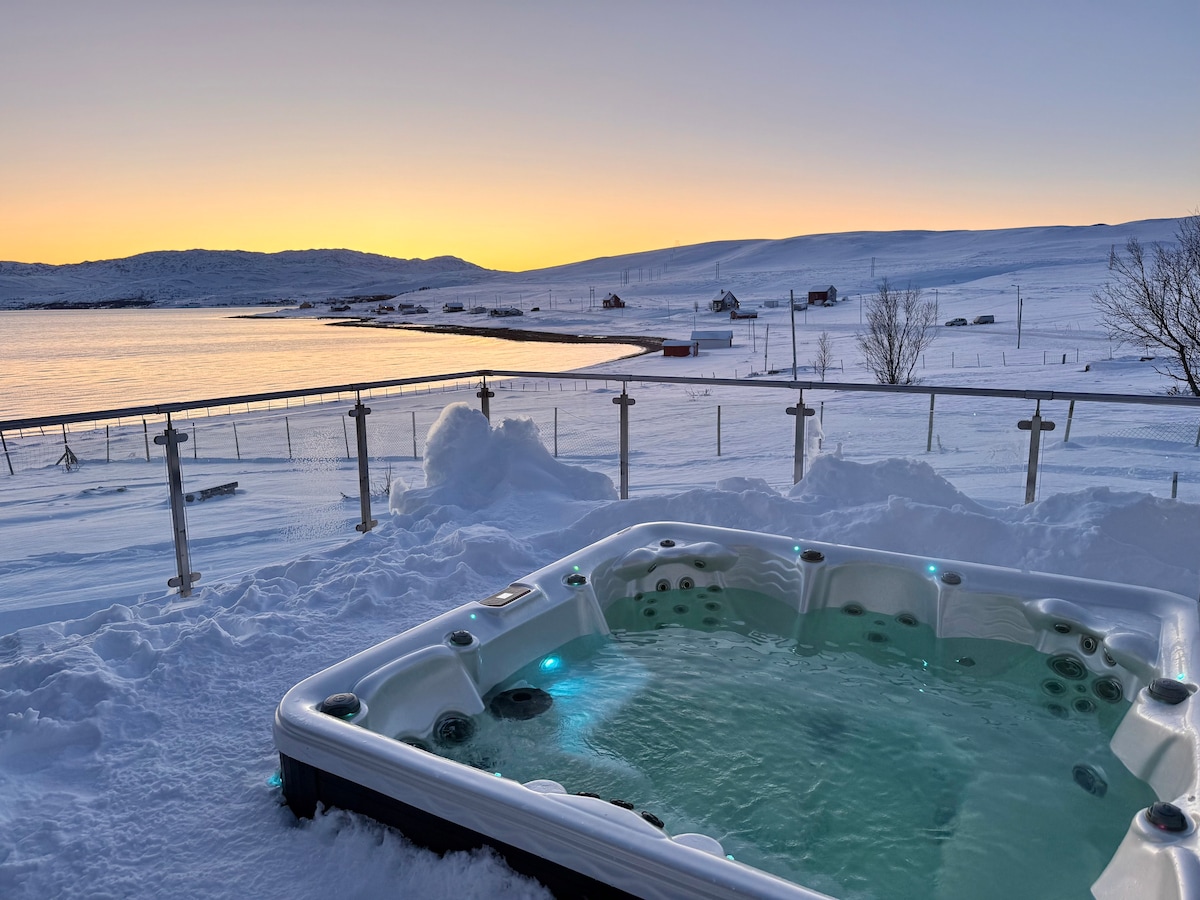 Дивовижний вид на фіорд, джакузі та північне сяйво