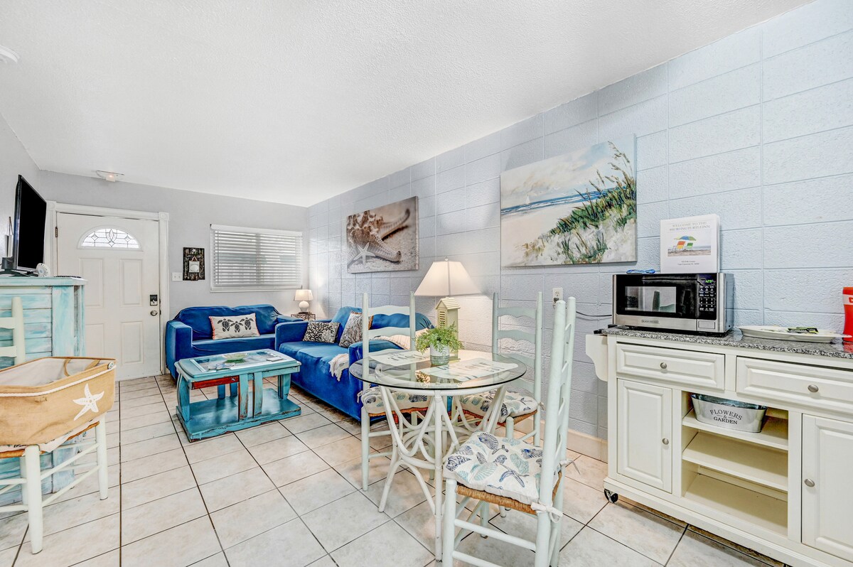 Нещодавно відремонтована затишна квартира-студія з багатьма зручностями в одному кварталі від пляжу. Зручно розташований між Порт-Канаверал і центром Кокоа-Біч. Чистий і доступний пляжний відпочинок з продуктовими магазинами, барами та ресторанами поблизу. Телебачення в прямому ефірі доступне лише з активним акаунтом для застосунків для потокового передавання в прямому Надішліть повідомлення господарю, якщо під час бронювання неможливо вибрати потрібну тривалість перебування.