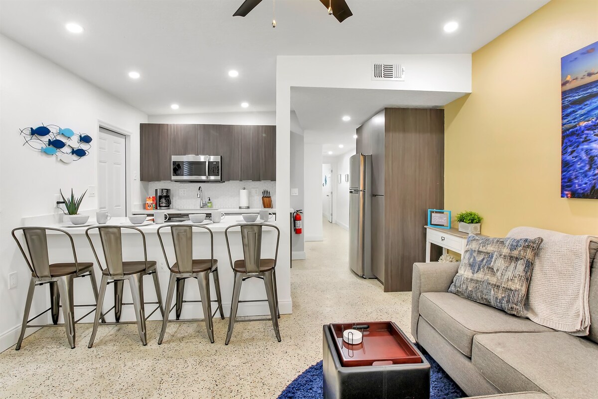 Ласкаво просимо до нашого чудового помешкання з 2 спальнями та 1 ванною на Airbnb, всього в декількох кроках від прекрасних пляжів Какао-Біч. Цей чарівний відпочинок пропонує затишну вітальню, повністю обладнану кухню та зручні спальні. Насолоджуйтеся зручністю доступу до пляжу всього в кварталі, що дозволяє насолоджуватися просоченими сонцем днями та безтурботними прогулянками уздовж берега. Забронюйте помешкання сьогодні і знайдіть найкраще на пляжі Какао!