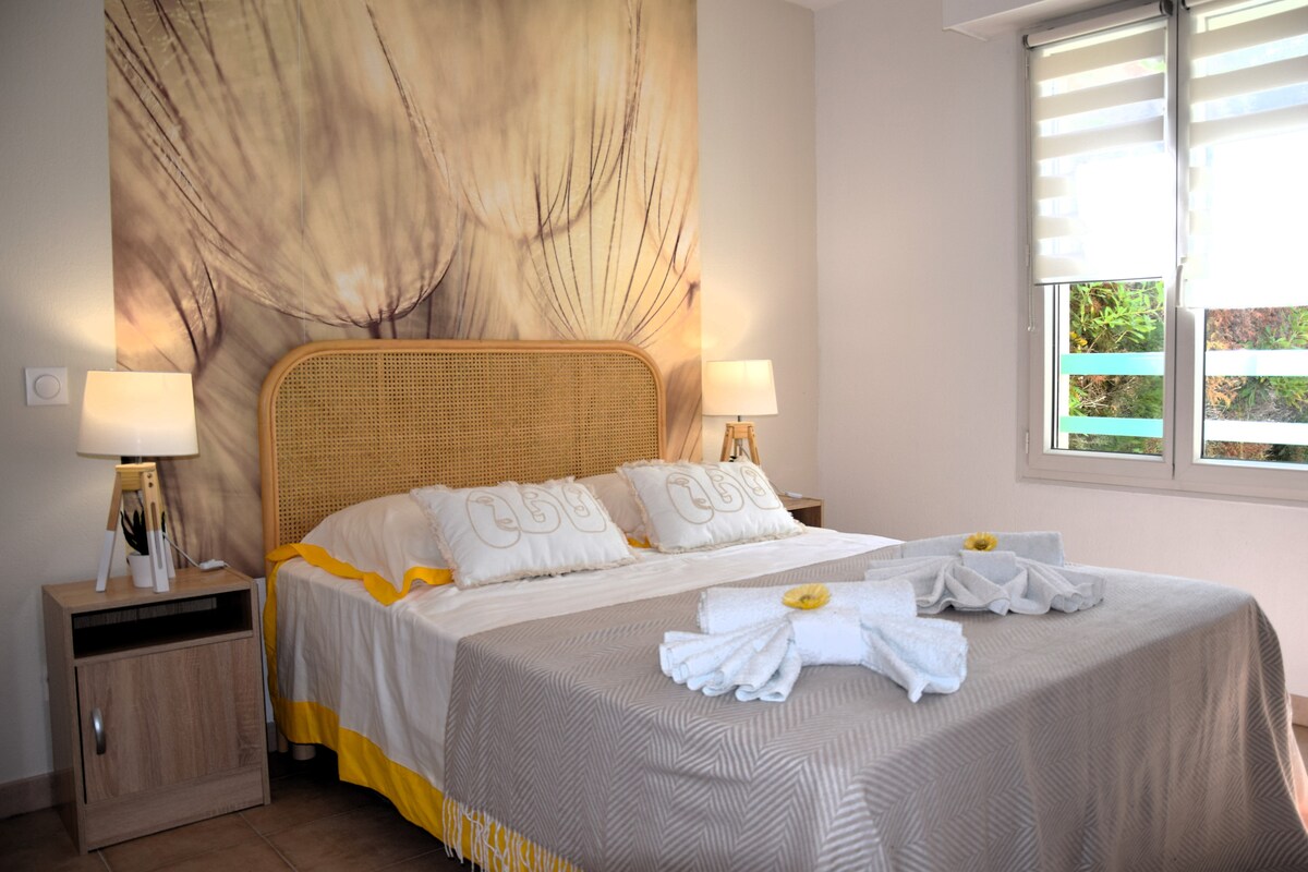 Подаруйте собі відпочинок у цьому чарівному дуплексі, який ідеально розташований біля моря. Він має зручну вітальню та приголомшливий вид на море. Ідеально підходить для спільного особливого перебування для двох. Вам сподобається спокій, м’який клімат і чудові заходи сонця. Ідеальне місце, щоб відновити сили в ритмі хвиль. Помешкання має чудове розташування. Пляж знаходиться навпроти, а прогулянки в масиві Естерель неподалік.