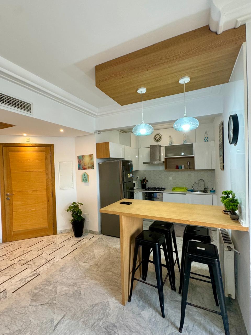 Затишна квартира, розташована в культовому порту Ель-Кантауї в Сус з видом на музичний фонтан. Розташована на 1-му поверсі, всього в 4 хвилинах ходьби до пляжу та загального басейну (картка доступу за запитом тільки в літній сезон з гарантією, сплаченою для покриття будь-яких збитків). Паркування на території під охороною та цілодобовим відеоспостереженням за окрему плату. В іншому випадку є безкоштовна вулична парковка. Усі зручності поруч (магазини, банки, банкомати, ресторани...