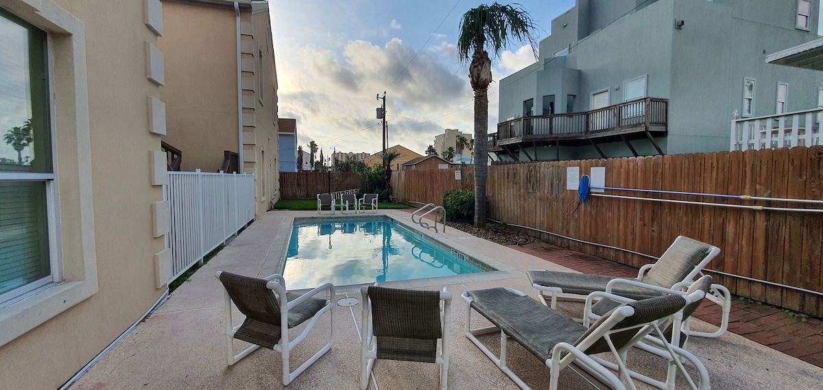 NEWLY UPDATED! ENJOY a 3'rd floor walk-up & summer fireworks outside this space with a shared pool. No need for driving! 3 min walk to beach! 5 min to entertainment district with bars, eateries and clubs. 1/2 block to free bus service to anywhere on the island/Port Isabel! NEW LAUNDRY CENTER IN MASTER! NEWLY RENOVATED King bed in master with en-suite bathroom, 2'nd bdr with 2 full-sized beds. Queen memory foam sofa/sleeper. * NOTE - ONLY FAMILIES DURING SPRING BREAK/SEMANA SANTA