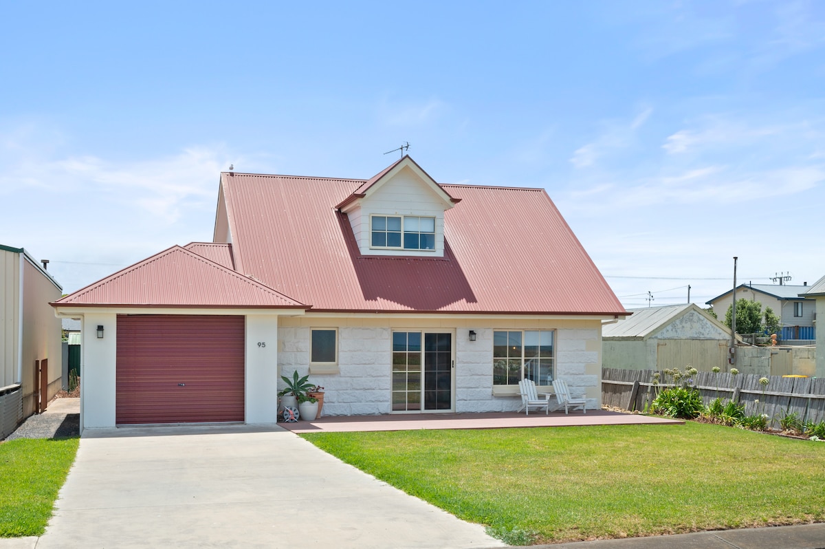 Красиво мебльований будинок внизу навпроти безпечного пляжу для купання. У самостійному помешканні є кімната з кіченом, лаунж-зоною, їдальнею та басейном. Пергола на відкритому повітрі для їдальні та барбекю на відкритому повітрі. Стіл і стільці спереду. Душ на вулиці в західному кінці будинку. Спальних місць 6. Легка прогулянка до всього. Обов 'язкове місце для розміщення в Порт-Макдоннеллі. Мінімальне бронювання на довгі вихідні та 3 ночі на Великдень 2 ночі на Різдво. Якщо ви берете з собою дітей, вкажіть їх незалежно від віку. Потокове передавання телевізора