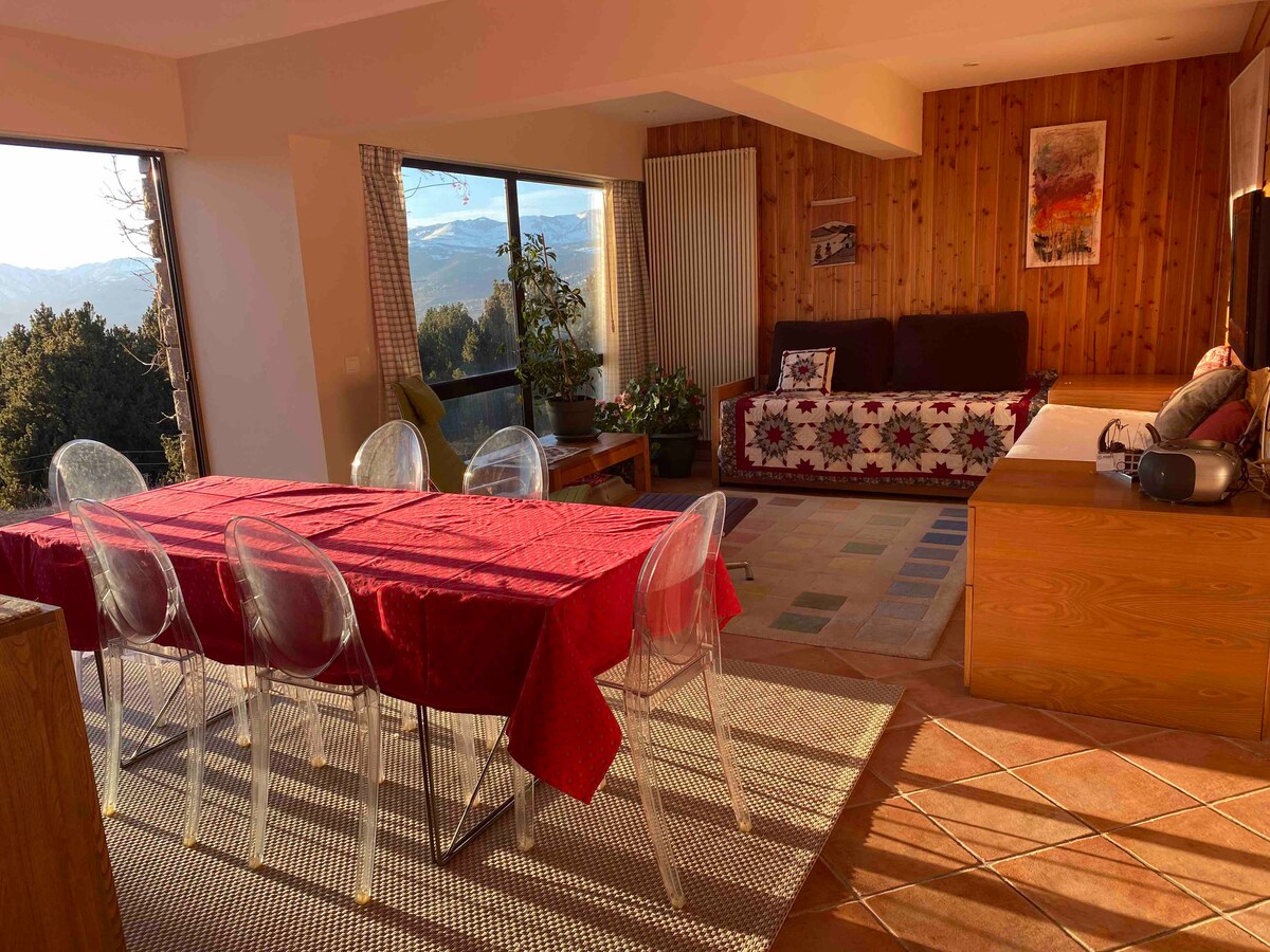 Квартира 65 м2, три спальні, ванна кімната, вітальня-кухня, парковка, сад, Wi-Fi, телевізор, посудомийна машина. Іграшки, настільні ігри та книги. Дитяче ліжечко. 10 хвилин від Font-romeu, 5 хвилин від Eyne, 15 хвилин від Les Angles. Вид на Камбре-д 'Азе. Продуктовий магазин і м 'ясник на відстані 300 метрів. Поруч проходять численні пішохідні стежки. Жовта залізнична станція залізничної станції у п 'яти хвилинах