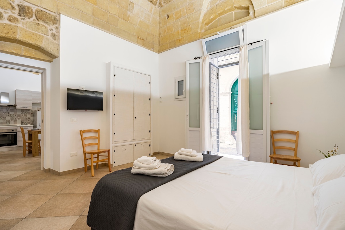 Appartamento finemente ristrutturato nel cuore del centro storico, ubicato a piano terra,composto da open space con angolo cottura, camera da letto matrimoniale e bagno. Contornato da ristoranti e locali tipici, dove gustare tutte le eccellenze del territorio salentino Dista solo 500 metri dalla stazione centrale di Lecce e a pochi passi dai luoghi simbolo della città. Nelle vicinanze è presente la fermata dell'autobus, che permette di raggiungere le marine piu rinomate e diverse località.