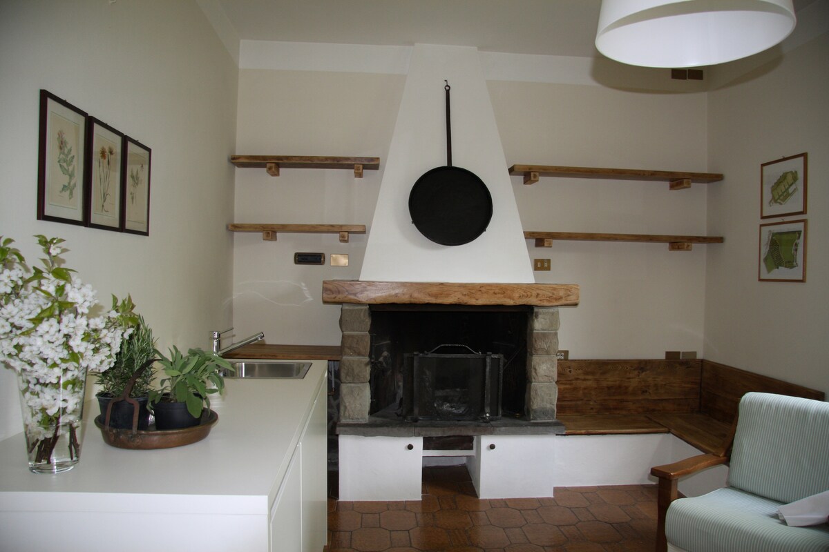 Uno spazioso bilocale con travi a vista appena ristrutturato. E' composto da un soggiorno con un delizioso camino e divano letto, una cucina (separata dal resto della casa), una camera matrimoniale con letto queen size ed un bagno con doccia.