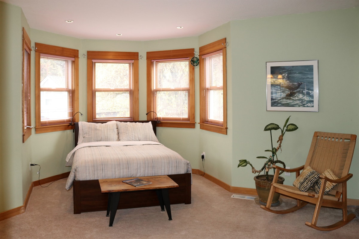 Затишний люкс у затишному, безпечному районі з приватним цифровим входом з ключем для зручності. Окрема міні-кухня та ванна/душ, зручне ліжко розміру Queen size, розкладний диван, надувне ліжко, упаковка та ігри, високий стіл і стіл для переодягання. Багато місця в шафі, включаючи континентальний сніданок і приватну криту зону відпочинку на відкритому повітрі. Дуже близько до автобусних зупинок, тому вам не знадобиться автомобіль. До парків, продуктових магазинів і ресторанів можна дістатися пішки. Поруч із центром міста, зоопарком, японськими, китайськими та рожевими садами, OMSI.