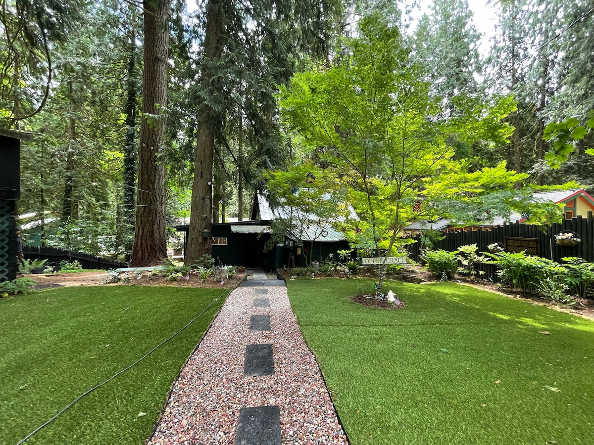 Сонячний, приватний котедж з однією спальнею в затишному лісовому районі. Окреме житло за головним будинком. Ліжко размера "queen-size", диван-кровать, телевізор, Wi-Fi, кондиціонер, повна кухня, пральна машина та сушильна машина, ванна кімната з душем та красивий патіо. Одна миля від I-5 і 8 миль до центру Портленда. Коротка поїздка до центру озера Освего. Відстань пішки, всього два квартали, до Ла Прованс, Хефе, Зупанс, Альбертсон, Старбакс, Валуга Парк. Ідеально підходить для сімей або ділових поїздок. Приходьте залишитися!