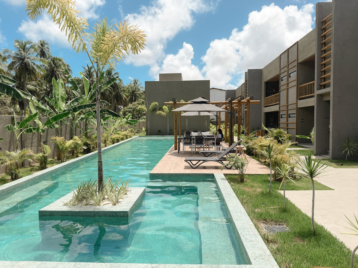 Naay – розкішний кондомініум на піску, розташований на Шляху Чудес. У Naay Vida ми маємо привілей прекрасного краєвиду на кокосові дерева та часткового краєвиду на море перед нашим будинком. Ми розташовані в затишному районі в Мілагрес, Прайя-де-Татуамунья, поруч із розкішним готелем Beira Mar Evva Inn. Екологічна концепція, що поєднує в собі «мінімалізм і розкіш». Середовище для паузи, дихання та відпочинку. Ласкаво прошу до Naay Ocean Life.