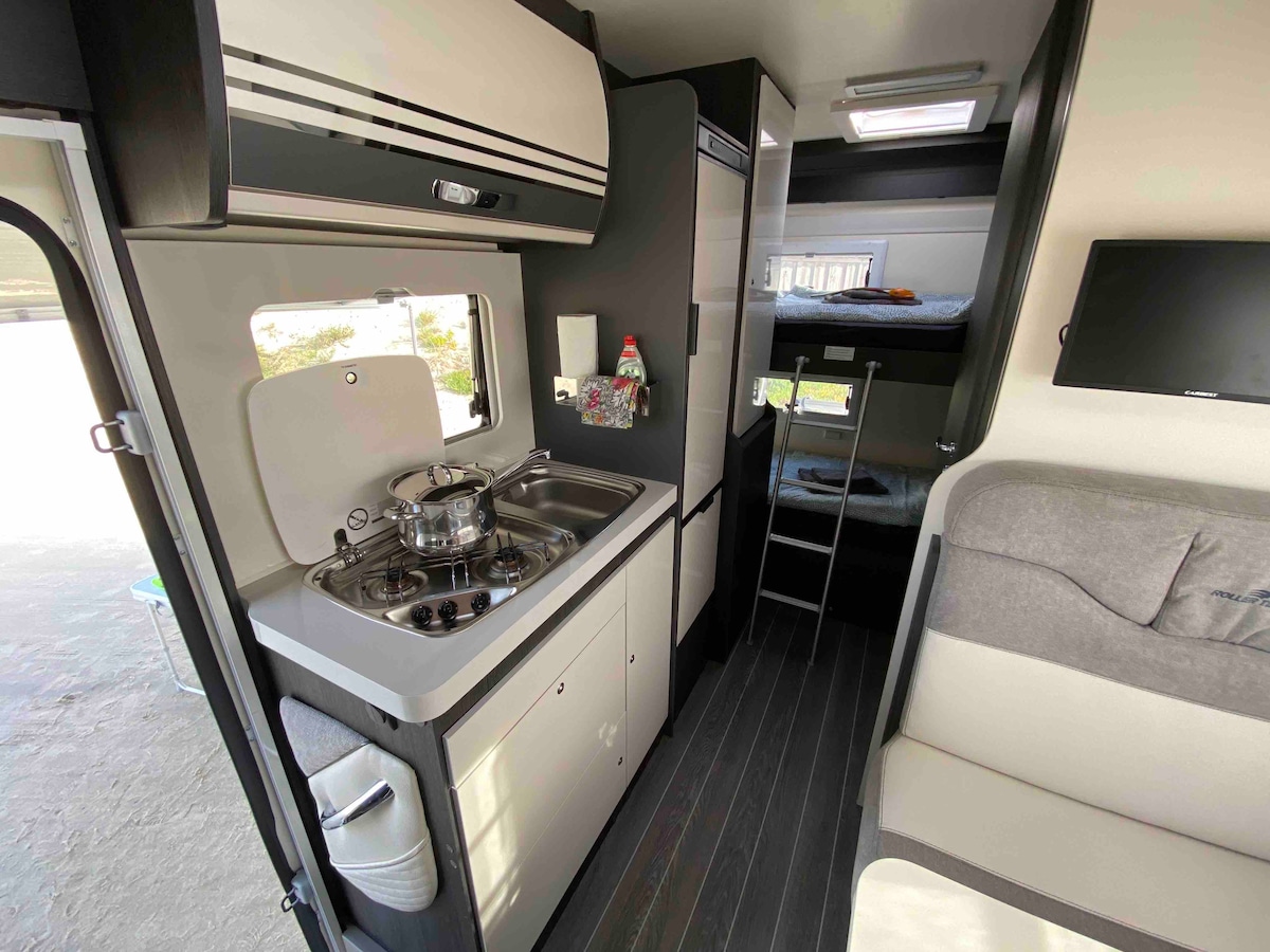 Керолайн з компанії Caravanconcierge - це сучасний і просторий автодома німецького будівництва, з двоспальним ліжком, завжди відкритим і двоярусним ліжком, а також двоспальним ліжком, яке зібрано зі столом і диванами. Він пропонує достатньо місця для великої сім 'ї. Зручно для сімейної подорожі або подорожі до 6 осіб. З усіма зручностями. БУДЬ ЛАСКА, ВРАХОВУЙТЕ, якщо ВИ ХОЧЕТЕ ПОДОРОЖУВАТИ #% ЄВРО НА ДЕНЬ, ПОТРІБНО СПЛАТИТИ СТРАХУВАННЯ.