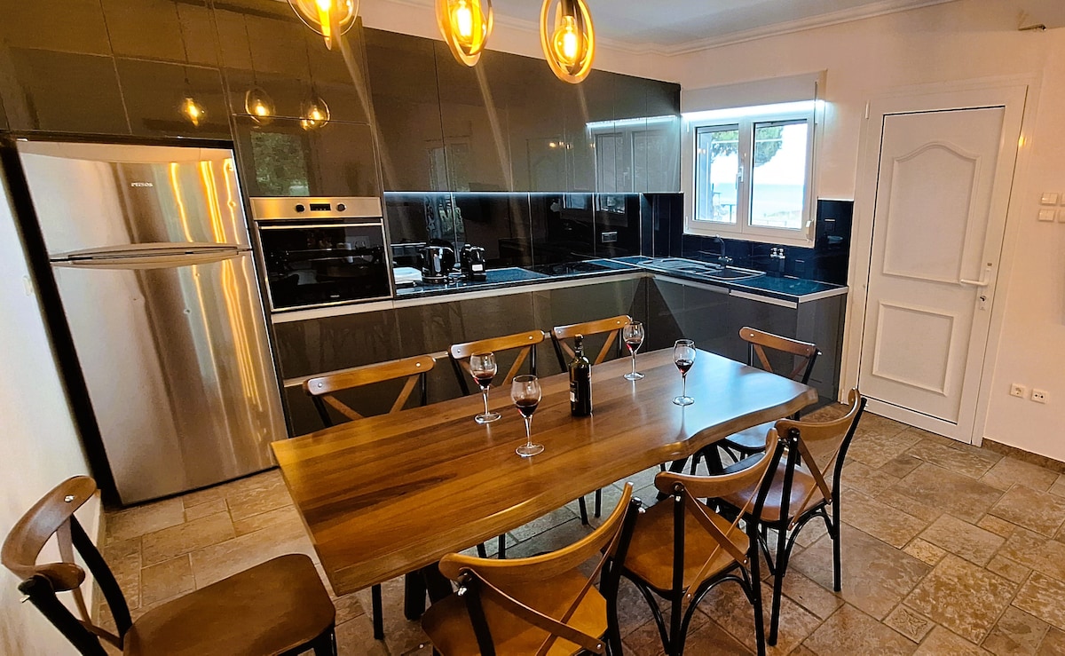 Сучасний будинок з чудовим видом, побудований у 2004 році, з традиційною грецькою архітектурою (камінь і дерево). Будинок (вілла), розташований на відстані 150 м від найвідомішого пляжу острова (золотий пляж), ідеально підходить для сімей, які прагнуть комфорту та відпочинку разом з красою та гармонією.